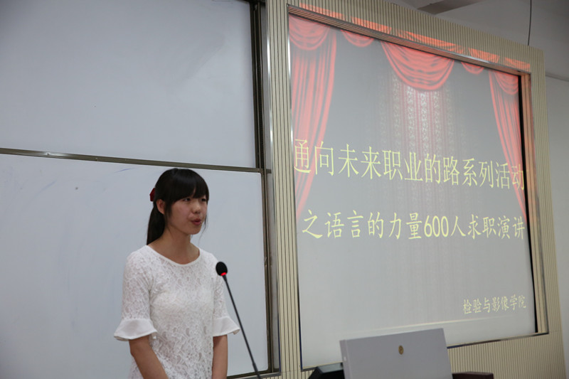 检验与影像学院“通向未来职业的路”系列活动之语言的力量600人求职演讲主要是针对学院2015届新乡校区、平原校区、卫辉校区600余名毕业生开展的一项以锻炼求职技能、培养求职主动性、提升职业素养为主要目标的系列活动之一,这些毕业生以小班为单位,每位同学都要走上舞台做实习前的求职演讲,直至演讲水平符合学院要求。过程包括:测评老师为每位同学提出改进意见;演讲全程录像,每位同学保留一份自己演讲的录像,以便反复观看,发现不足,及时改进;学院将录像存档,作为教材学习调研,为以后的类似教育活动提供帮助。