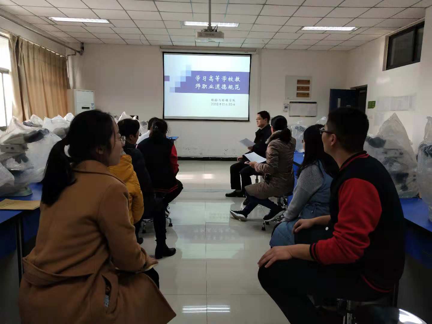 11月30日,检验与影像学院召开全院学习会,专题学习《新乡医学院三全学院管理工作问责条例》及《教师职业道德规范》,党总支书记胡淼主持学习,各教研室教师参加学习。
