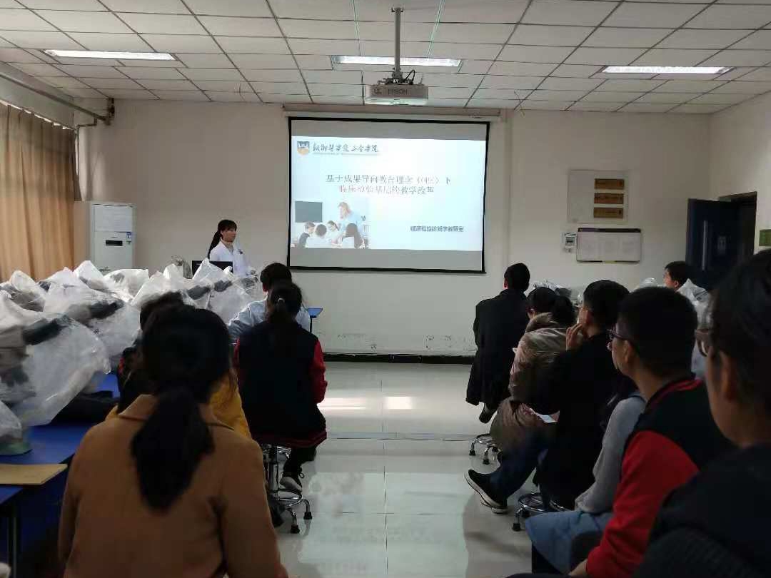 本次大赛以“探讨基于OBE教育理念全面落实到应用型课程建设”为主题,各教研室围绕课程教学情况、OBE人才培养模式改革和应用型人才的培养,由临床检验诊断学教研室开悦,临床生化化学与仪器学教研室史烨萍,免疫学与微生物学教研室杜纪英,影像诊断学教研室丁远鸽作为主讲人,对各自所授主要课程的应用型课程建设进行了的具体实施方案的阐述。