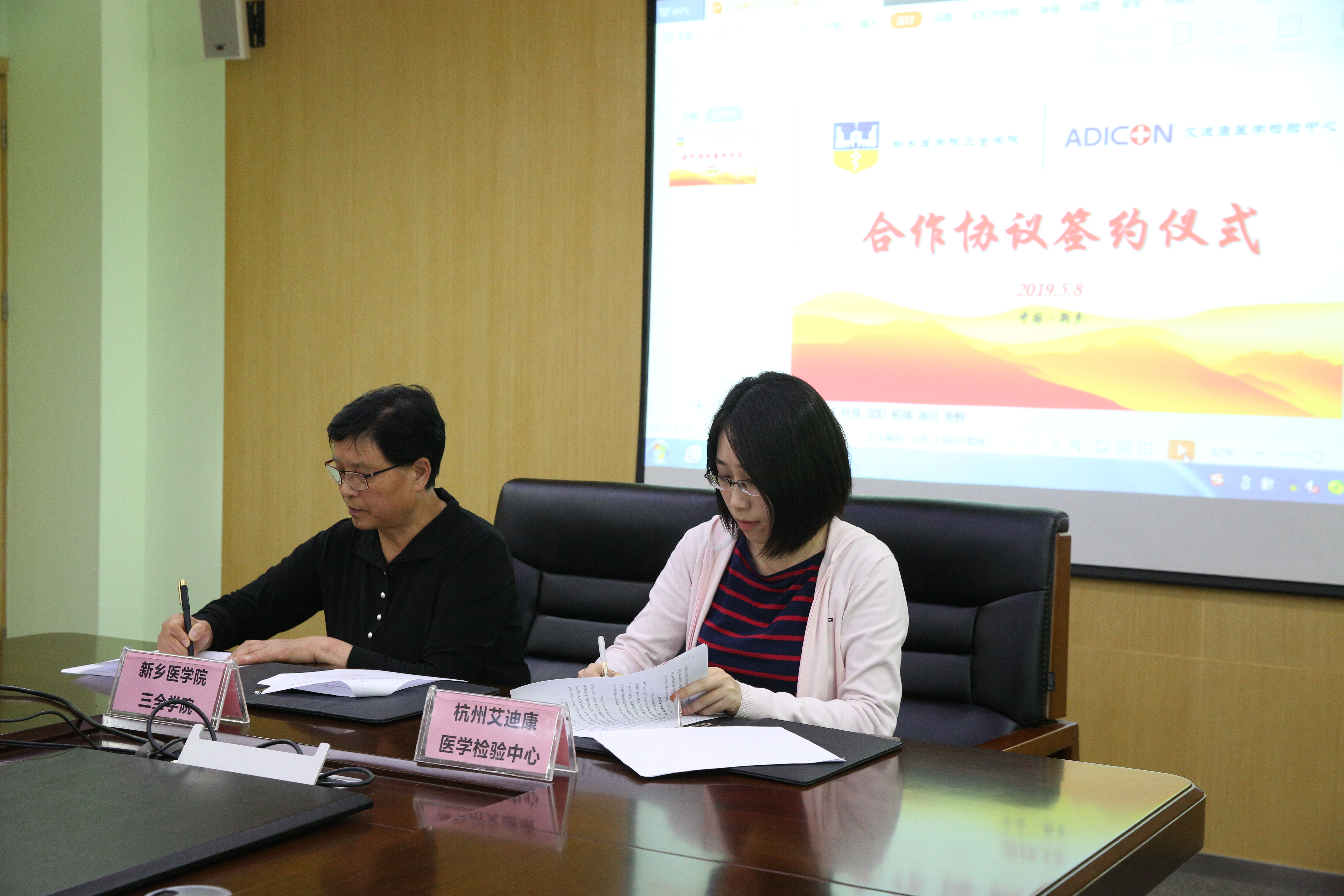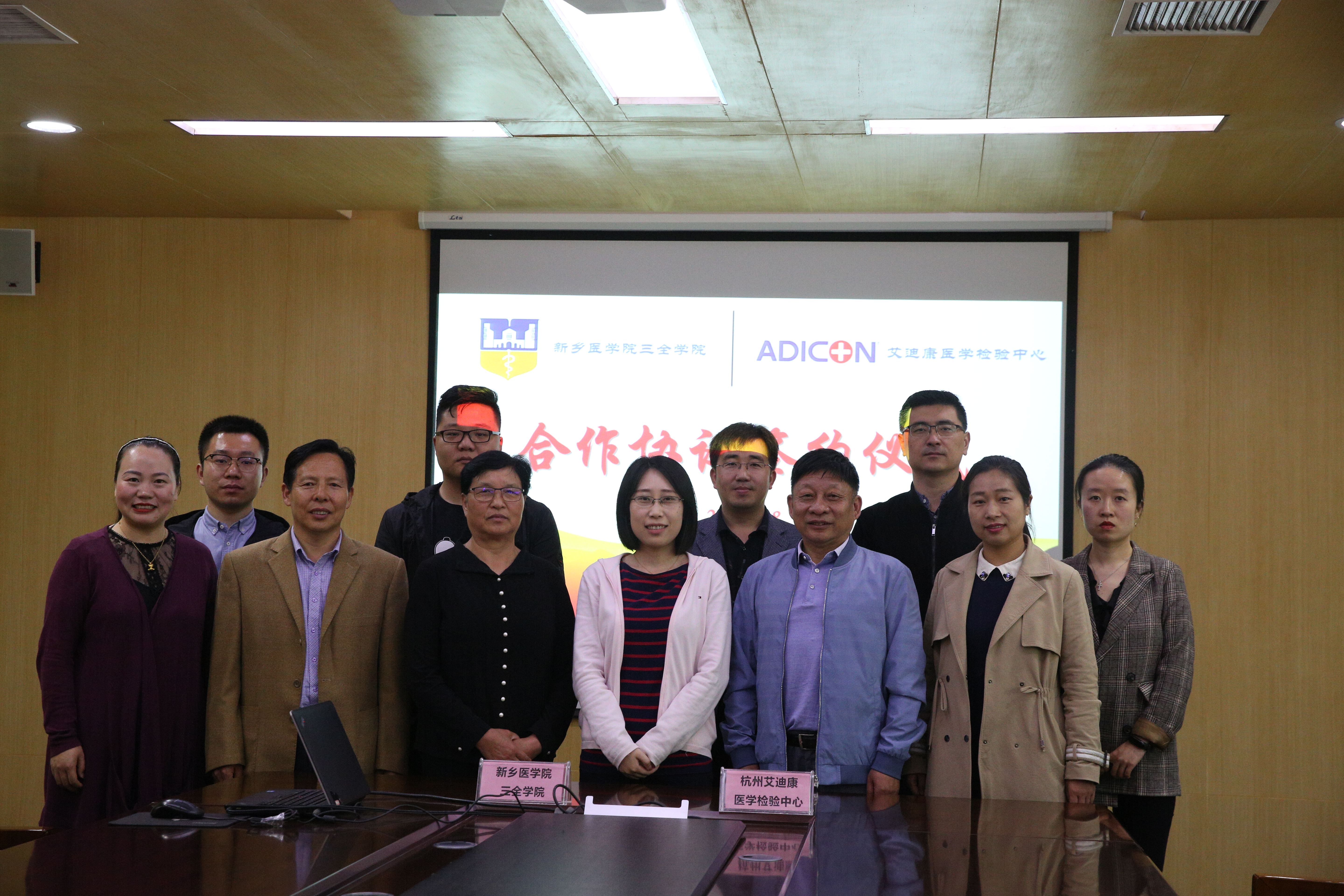 5月8日上午,我校与艾迪康医学检验中心在平原校区行政楼第三会议室举行合作协议签约仪式。艾迪康医学检验中心全国招聘主管杨蕾、郑州艾迪康临床实验室经理杨超、郑州艾迪康病理实验室经理张湘、郑州艾迪康人力资源部主管禹凡、我校教务长杜华贞出席,产教融合办公室、教务部、检验与影像学院等相关部门负责人参加。仪式由检验与影像学院院长贺志安主持。