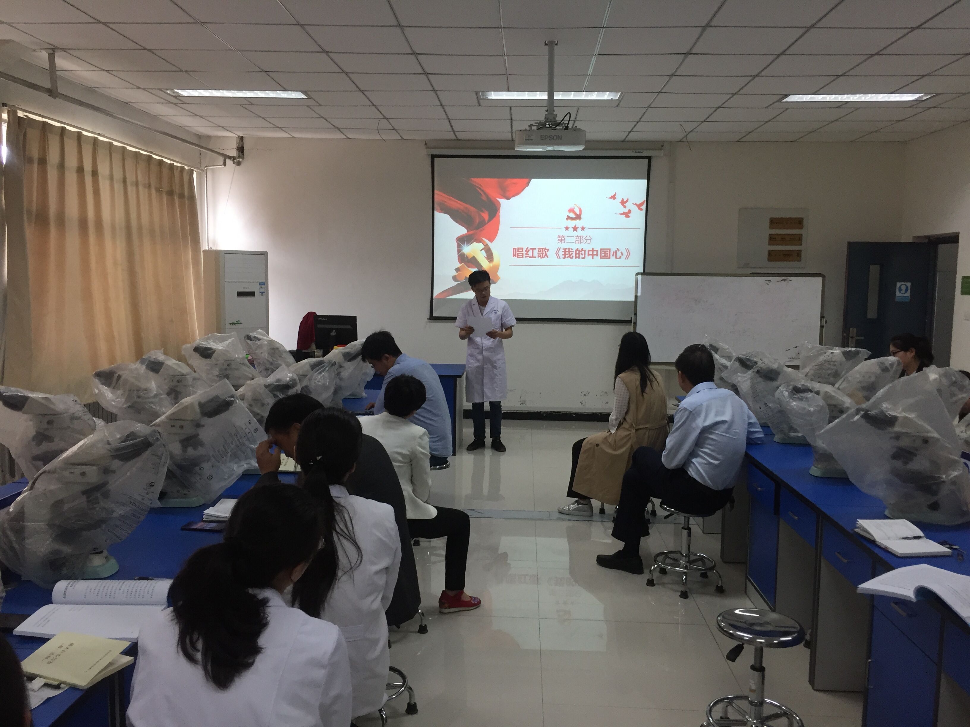 为全面学习贯彻习近平新时代中国特色社会主义思想, 树立广大党员教师对党的归属感和认同感,增强职工党员爱国主义热情,5月15日上午,检验与影像学院在院系楼四楼举办了“青春心向党,建功新时代”主题党日活动。本次活动由第一支部承办,检验与影像学院贺志安院长、李平法教授、赵洪增教授、吕庆波教授、李合朋教授及全体专职教师参加了此次活动。