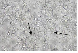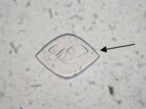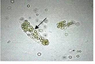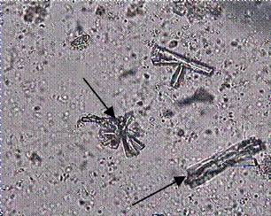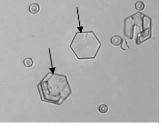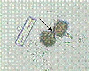 7、箭头所指细胞内结构的名称:尿酸铵结晶