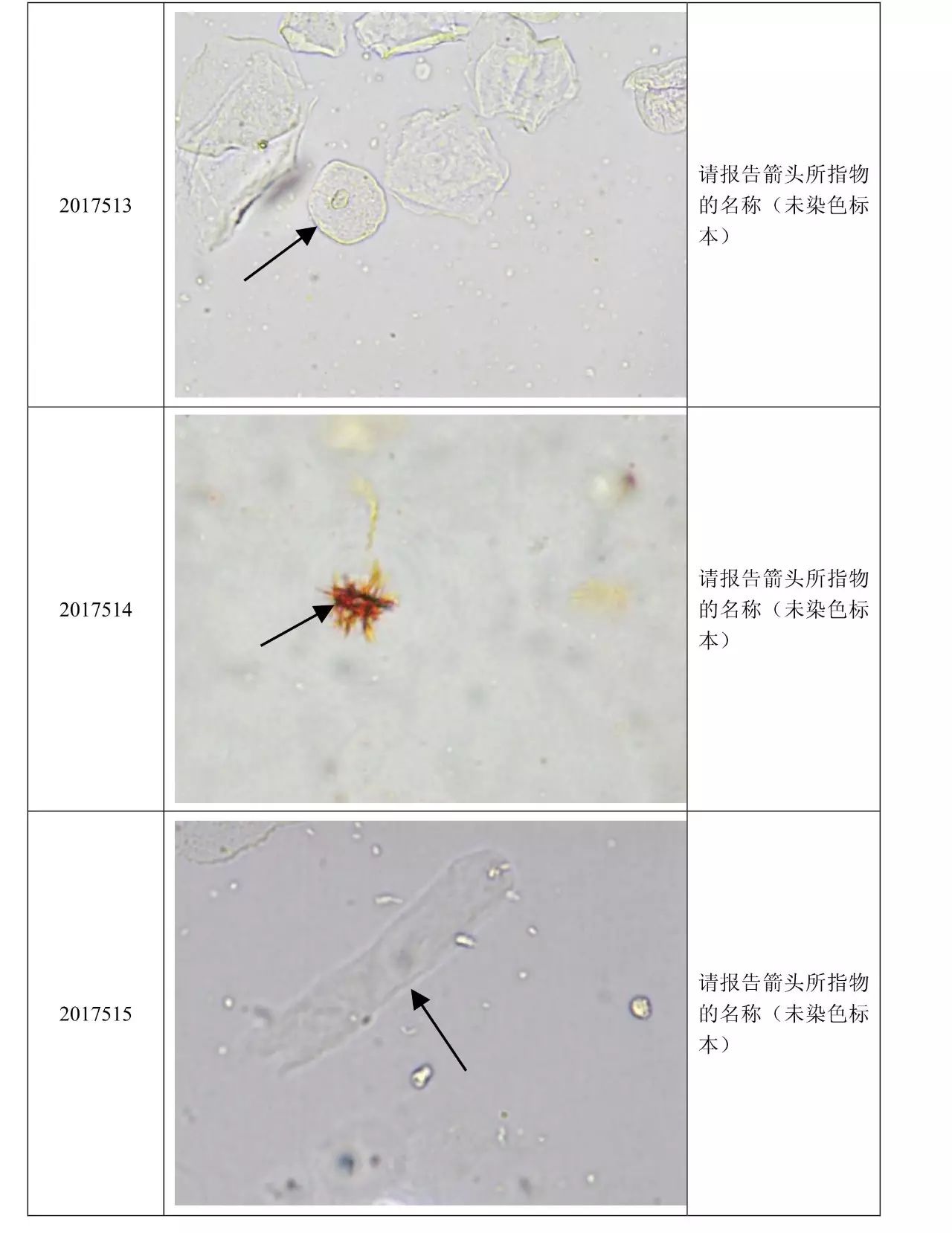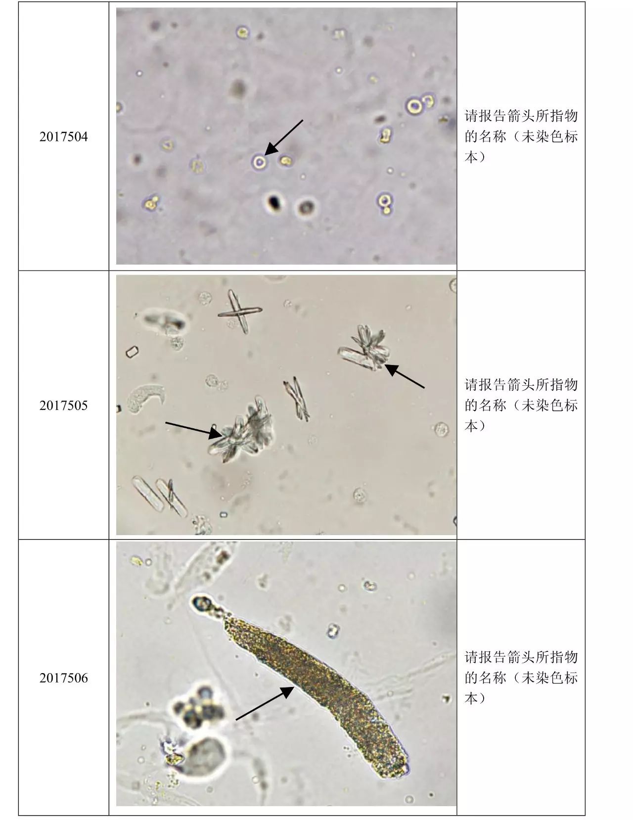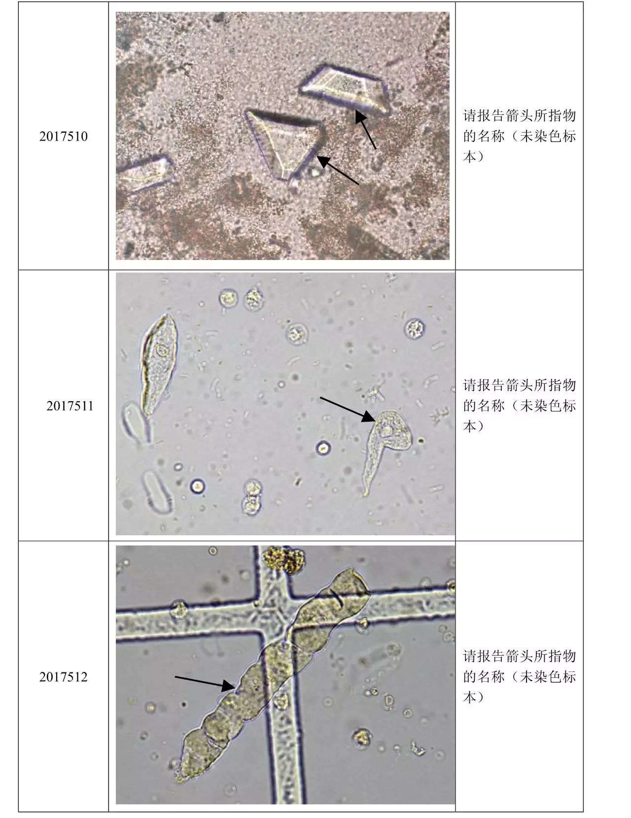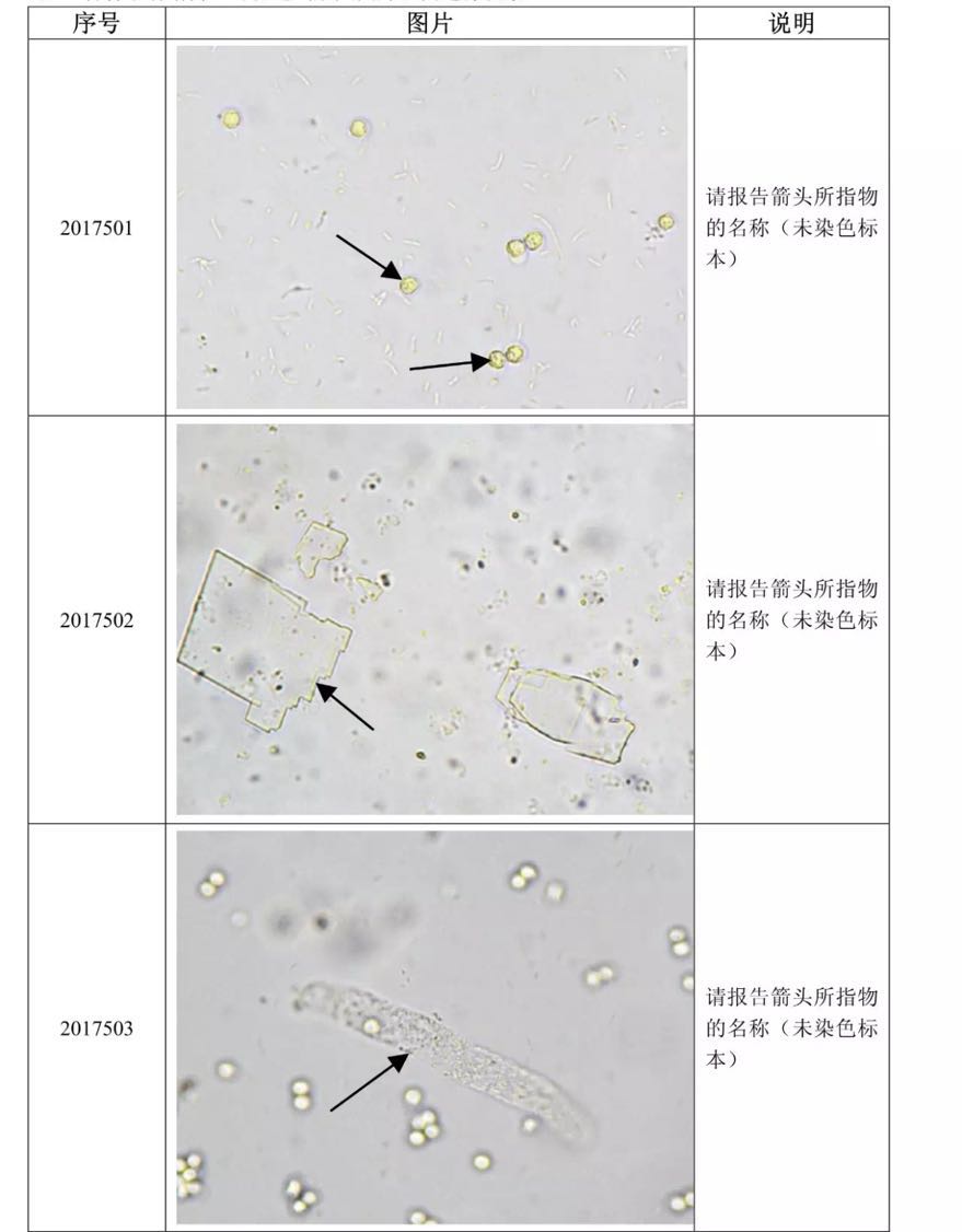 2017年卫生部尿液沉渣形态学检查室间质量评价及答案