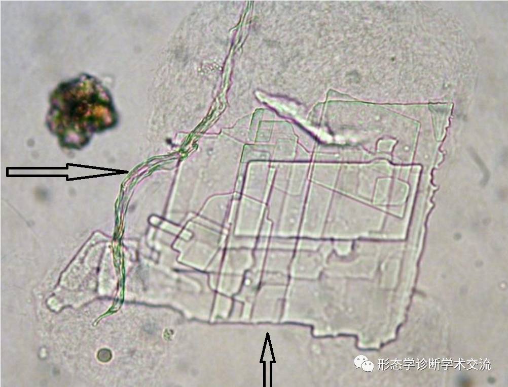 15、箭头所指细胞内结构的名称:胱氨酸结晶