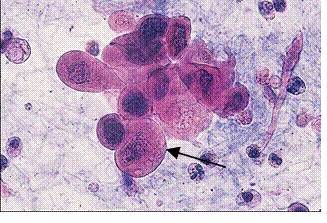 11、箭头所指细胞内结构的名称:移行上皮癌细胞 扁平上皮癌细胞 腺癌细胞