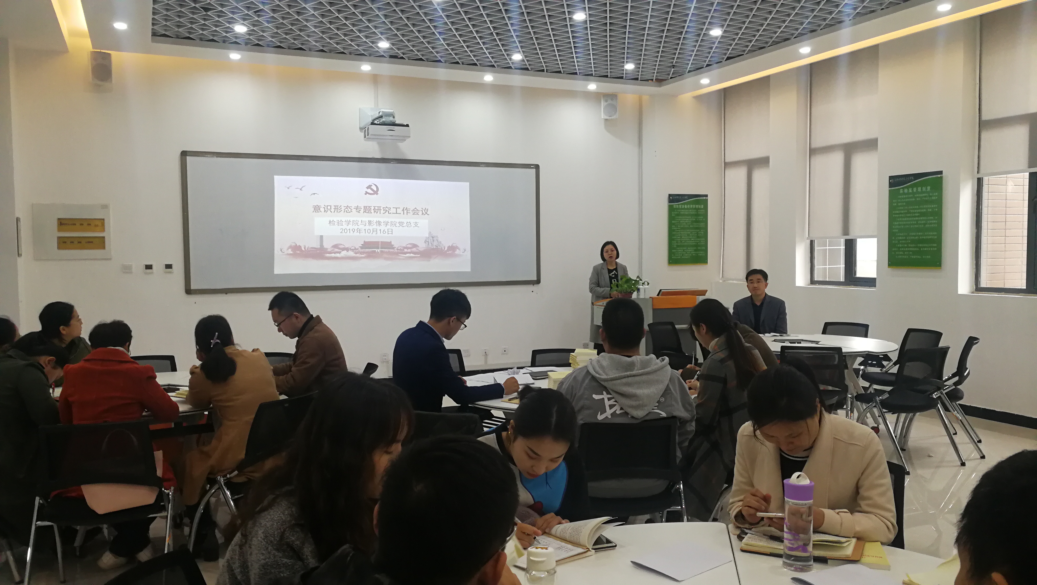 10月16日中午,检验与影像学院党总支在医工楼实训中心核磁实训室召开意识形态工作专题会议,会议由党总支书记赵云娟主持,医学检验学院和医学影像学院全体教职工参加会议。