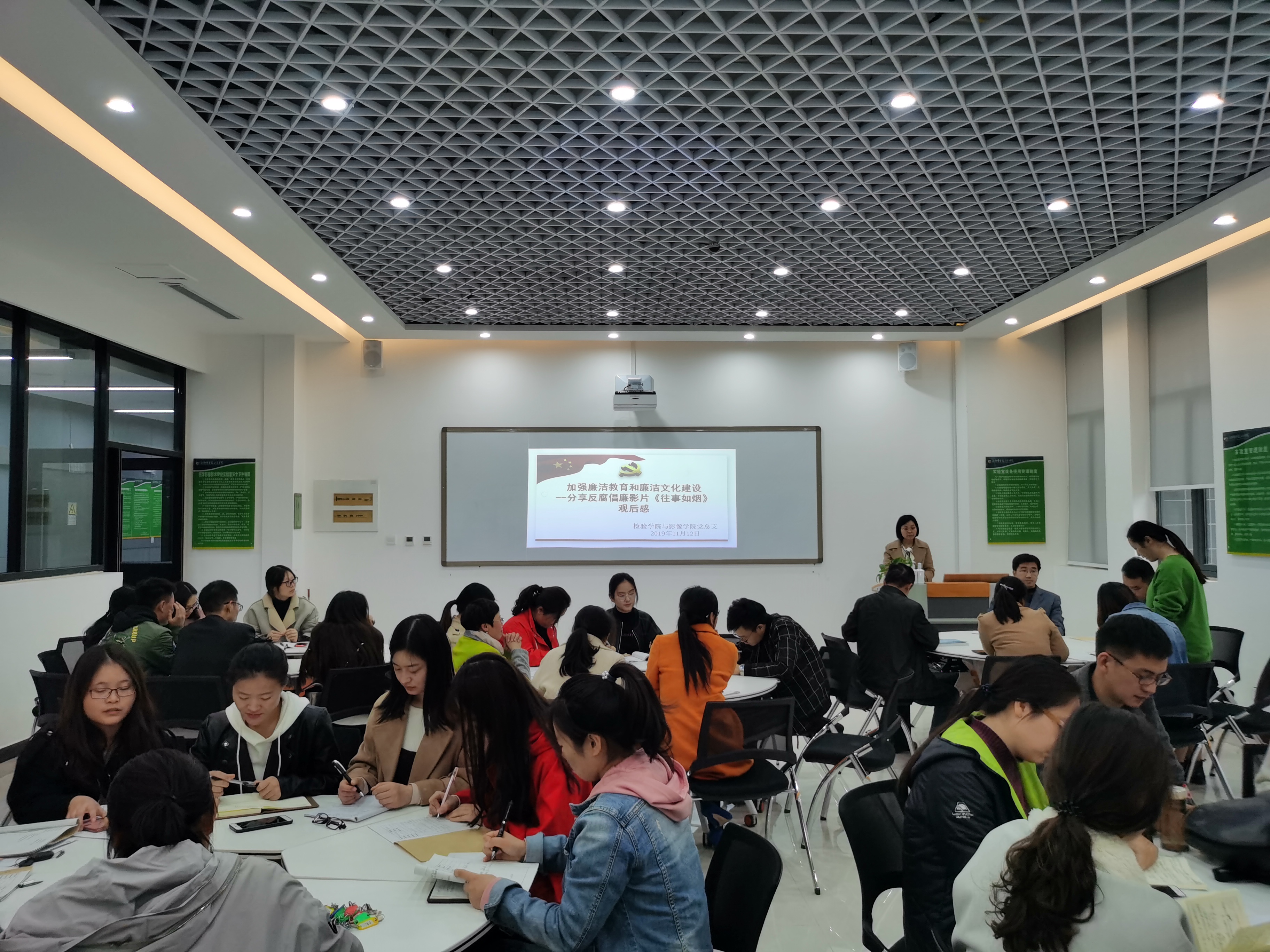 11月12日,检验与影像党总支全体教职工在实训楼召开廉洁教育主题活动,党总支书记赵云娟主持开展活动。