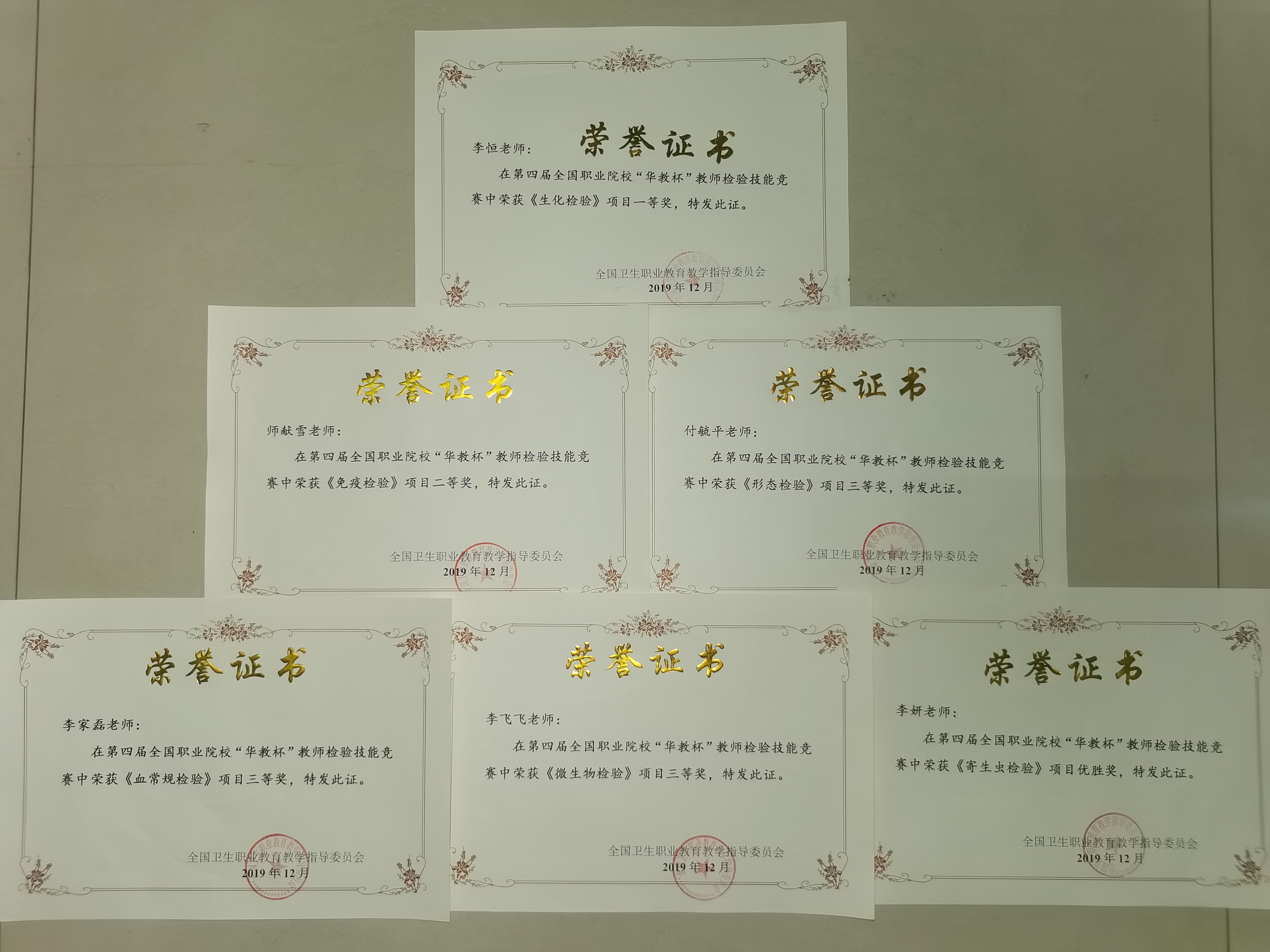 12月5日至7日,第四届全国职业院校“华教杯”教师检验技能竞赛暨第二届全国职业院校“人卫杯”检验专业微课大赛在邢台医学高等专科学校举行,我校在本次比赛中荣获一等奖1项、二等奖2项等共计9项荣誉。