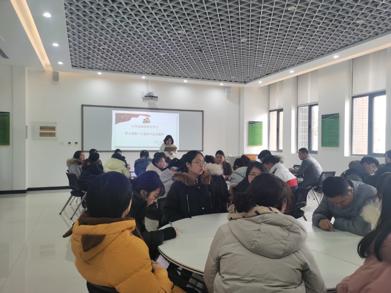 12月9日,检验与影像学院党总支在医工楼一楼核磁实训室召开12月份政治理论学习,由赵云娟主持,全体教师参加。本次政治理论学习集中学习党的十九届五中全会精神。
