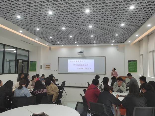 为贯彻落实习近平总书记关于宪法学习宣传教育的系列重要指示精神,引导广大师生了解宪法知识,理解宪法内涵,自觉尊崇宪法,10月7日上午,检验与影像学院党总支邀请健康管理学院党总支书记贾臻开展“宪法卫士”专题讲座。