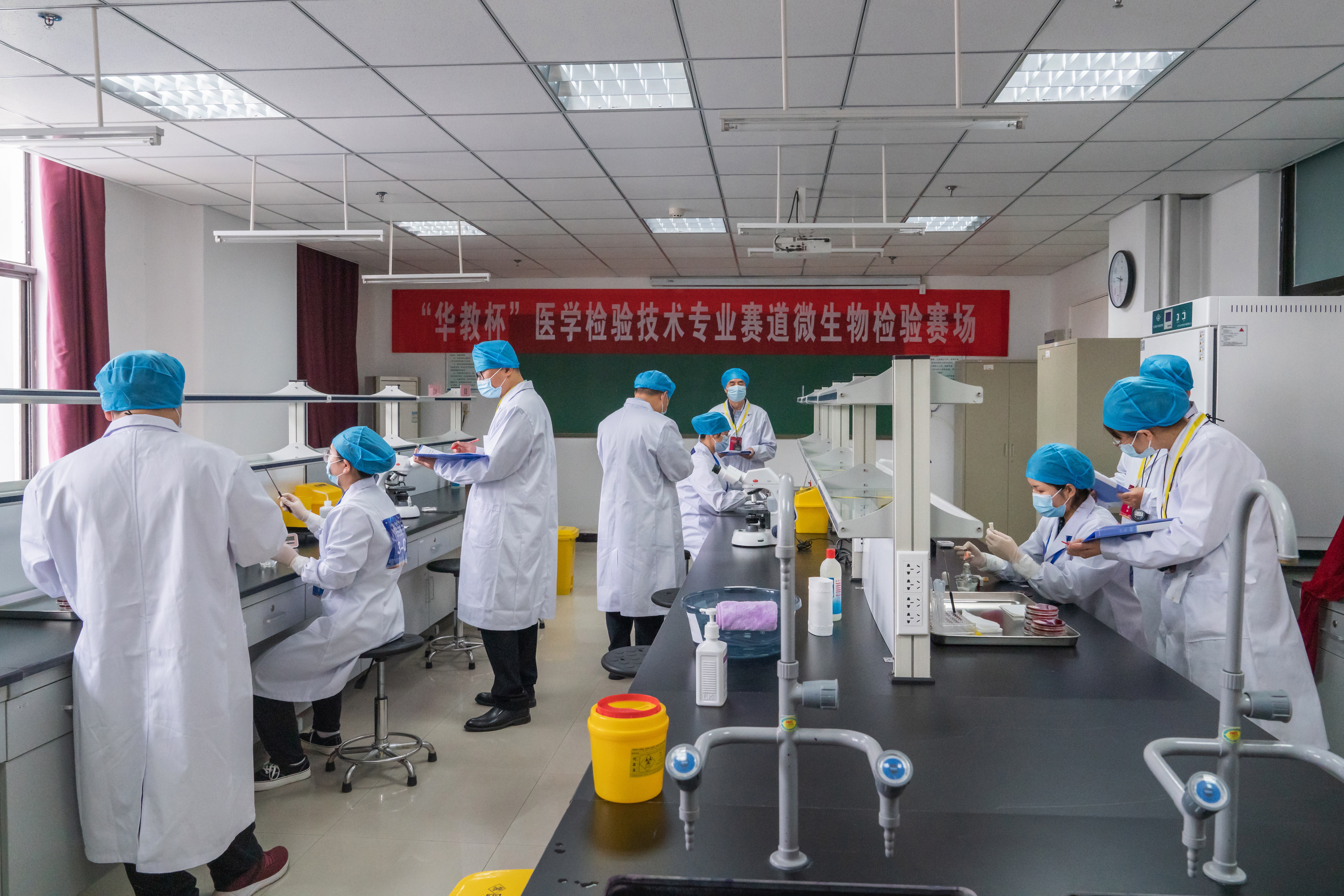 本次大赛为教育厅组织,新乡医学院承办第一次全省大学生技能大赛。医学检验技术赛道为站点式,大赛设置形态学检验与实验技能统考项目,血常规检验及临床应用项目、生化检验及临床应用项目、防护服穿戴和微生物检验项目四个部分,机考内容由省外专家出题,抽签等关键流程公开,现场裁判实施回避,结果仲裁小组审核。本次大赛系我省首次面向本科医学生举办的专业技能竞赛,是检阅医学检验技术专业教育教学改革和人才培养质量的平台,也是展现医学检验学子风采和技能的舞台。来自郑州大学等全省6所高校的12支代表队都进行了认真充分的准备。