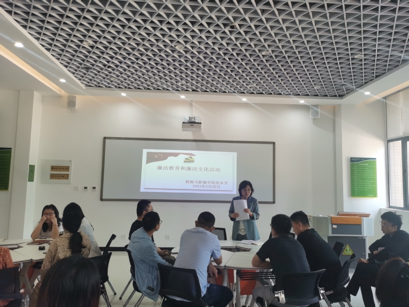为加强检验与影像学院全体教师树立廉洁理念,进一步宣传和学习廉洁文化, 5月20日,检验与影像学院党总支在医工楼一楼核磁实训室开展“弘扬廉洁文化,加强廉政教育”为主题的廉洁教育和廉洁文化建设活动。