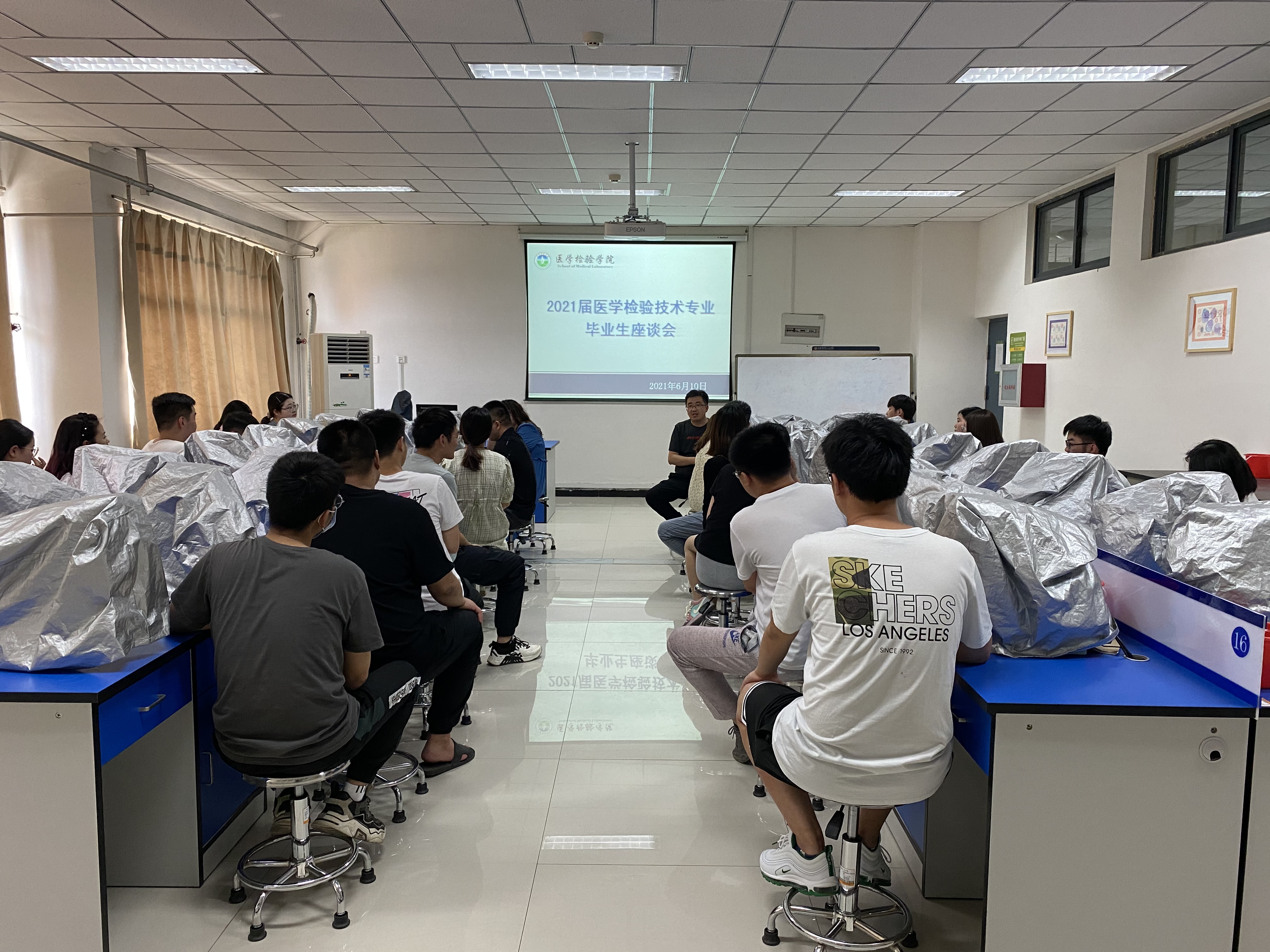 6月10日下午,医学检验学院在院系楼北楼四楼互动四实验室召开2021届毕业生座谈会,学院常务副院长胡淼、教学秘书张俊丽、行政秘书李家磊、教师代表杨亚文和毕业生代表们参加了座谈会。