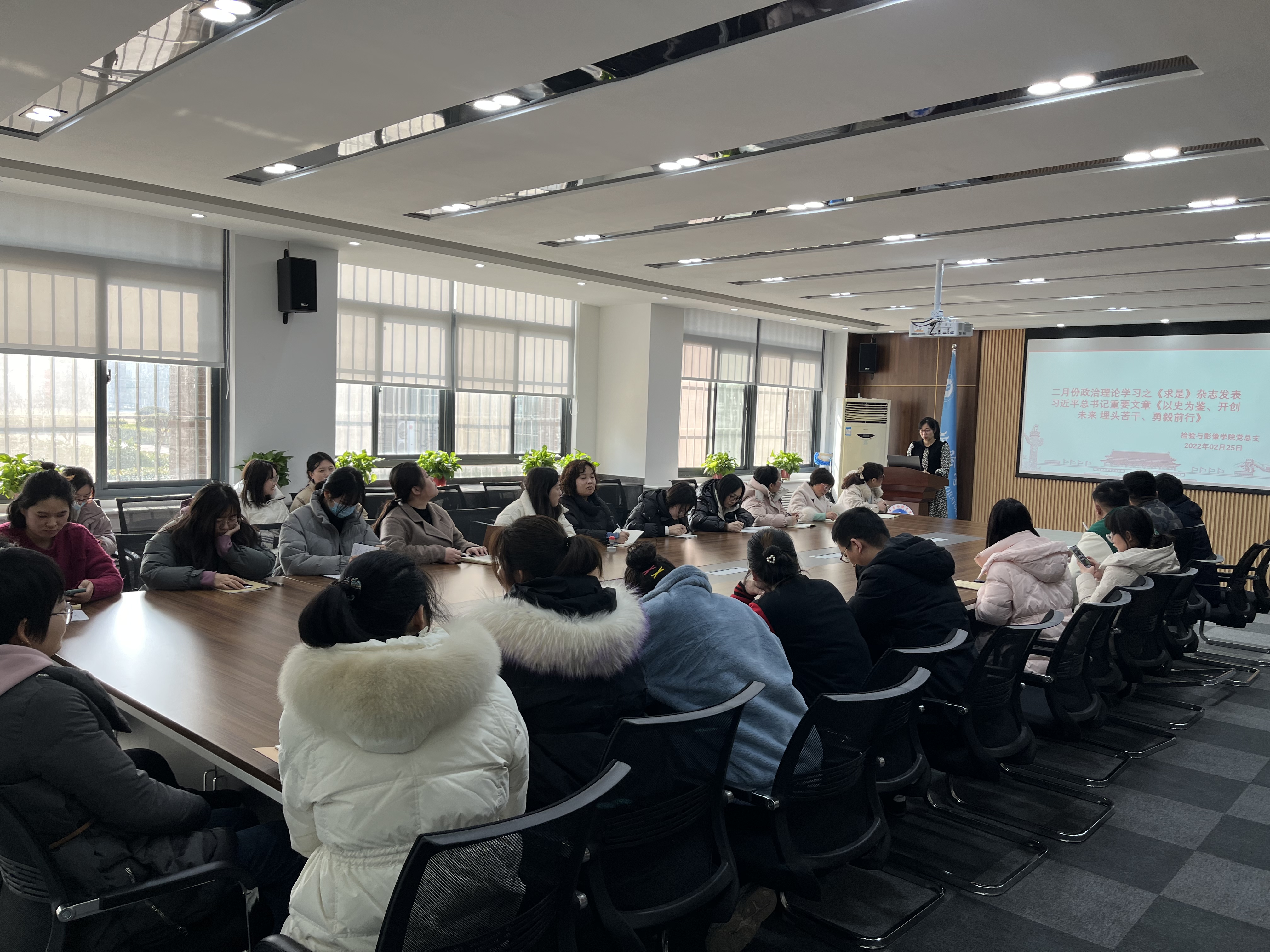 2月25日上午,检验与影像学院党总支在医学检验学院会议室召开2月份政治理论学习,检验与影像学院全体党员教师参加。本次政治理论学习由检验与影像学院党总支副书记苗莹莹主持,集中学习“习近平在省部级主要领导干部学习贯彻党的十九届六中全会精神专题研讨班开班式上发表重要讲话”、“《求是》杂志发表习近平总书记重要文章《以史为鉴、开创未来、埋头苦干、勇毅前行》”、“习近平在十九届中央纪委六次全会上发表重要讲话”、“‘百年初心成大道,万里征程作雄行’——以习近平同志为核心的党中央领导开展党史学习教育纪实”以及“中共中央政治局召开专题民主生活会——习近平主持会议并发表重要讲话”等五部分学习内容。