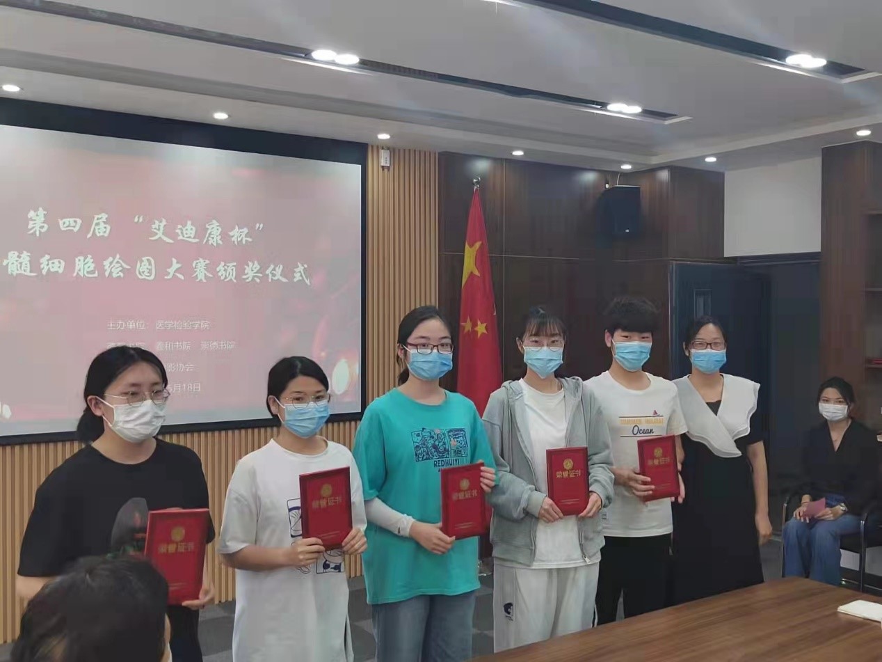 经过近一个月的层层筛选,最终决出一等奖3名、二等奖10名、三等奖15名、优秀奖5名,另外通过网络投票选出最佳人气奖3名,并于5月18日,在医学检验学院会议室隆重举行“艾迪康杯”第四届骨髓细胞绘图大赛颁奖仪式。颁奖仪式由王婉至老师主持,一、二、三等奖分别由德馨书院党总支副书记平丹丹、崇德书院党总支副书记杨翠萍、羲和书院苗江欢老师、检验与影像学院党总支副书记苗莹莹,医学检验学院院长贺志安颁发。