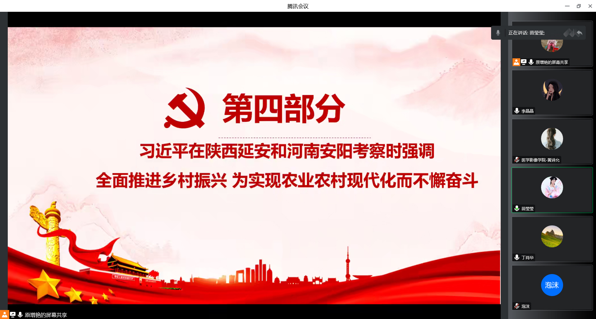 11月11日下午,检验与影像学院党总支中心组在腾讯会议进行11月份政治理论学习,会议由党总支副书记苗莹莹主持,党总支理论学习中心组全体成员参加。