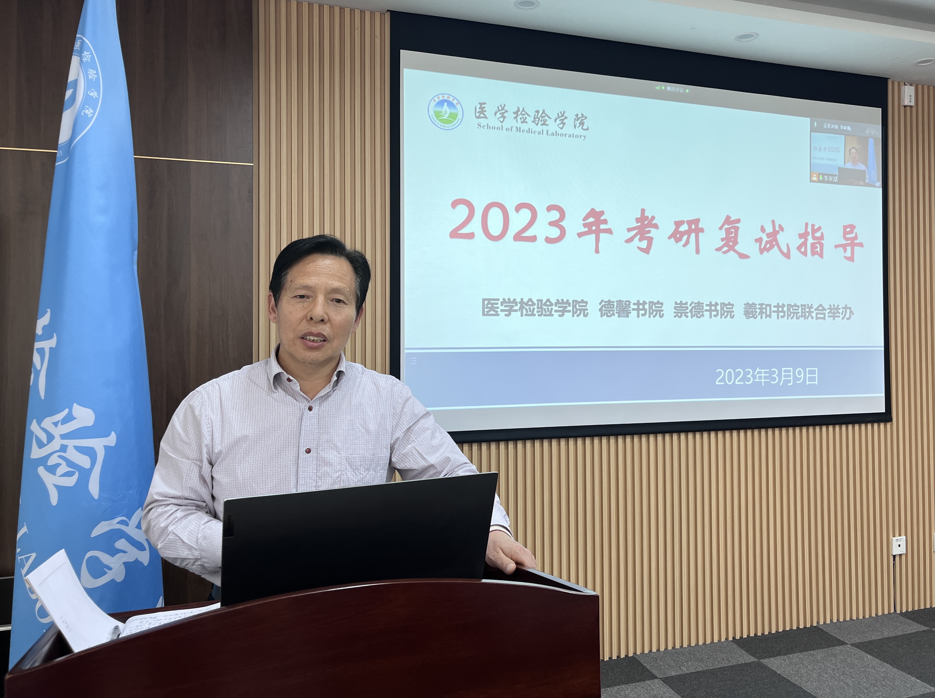 为做好2023年研究生复试指导工作,帮助考研学子更加精准做好复试准备,医学检验学院于3月9日下午通过腾讯会议组织开展了考研复试调剂指导会。医学检验学院院长贺志安教授、教师刘明月主讲毕业班辅导员和百余名考研学生参会。