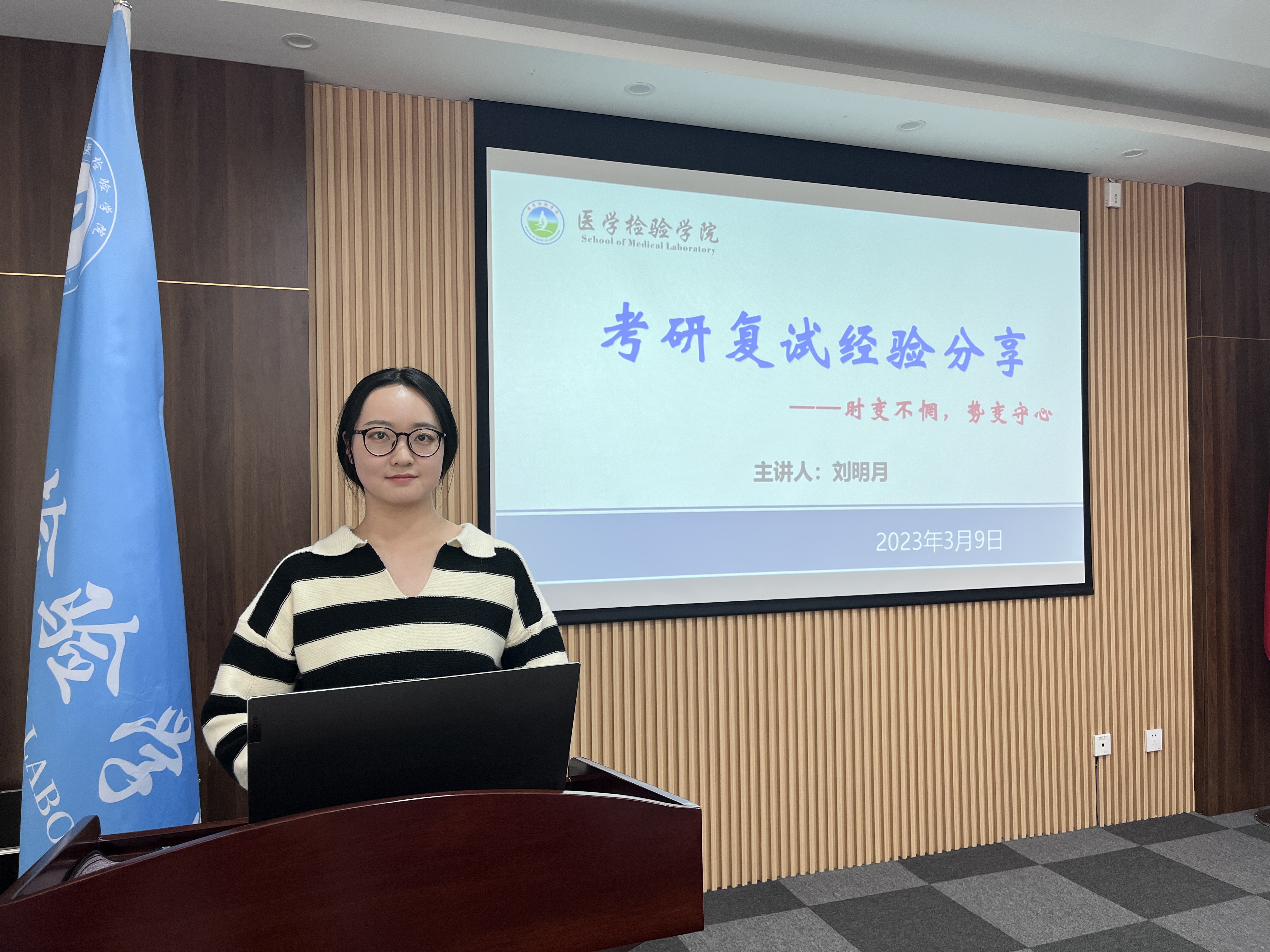 会上,贺志安通报了医学检验技术专业学生2023年考研初试分数,并表示今年考研学子不负众望,考研结果取得重大突破,特别是专升本科学生当中涌现出一批有理想、能吃苦、肯奋斗的时代青年。随后,刘明月从考研复试考什么、调剂需要看什么、面试准备什么、面试当天怎么做四个方面进行指导,向大家强调在面试过程中要保持良好的心态,不要过分慌张,并结合个人经验向各位考研学生分享了具体的内容。最后,贺志安提醒大家要根据自身实际情况、多渠道关注调剂信息,理性选择调剂院校、专业,并预祝大家在复试中取得优异成绩!