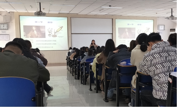 医学检验学院党支部书记、临床微生物学教研室副主任杜纪英老师在《临床微生物学检验技术》开学第一课讲到,微生物与人类是长期共存的,即是人类的好朋友,也是人类的敌人,在一些条件下,可以引起疾病,人类与微生物的战争是持久战,毛主席曾经说过,对待敌人要藐视它,但是一旦感染微生物必须重视它,希望同学们在学校期间要饮食合理,加强体育锻炼,保持健康的身体,为健康中国2030奉献青春和热血。