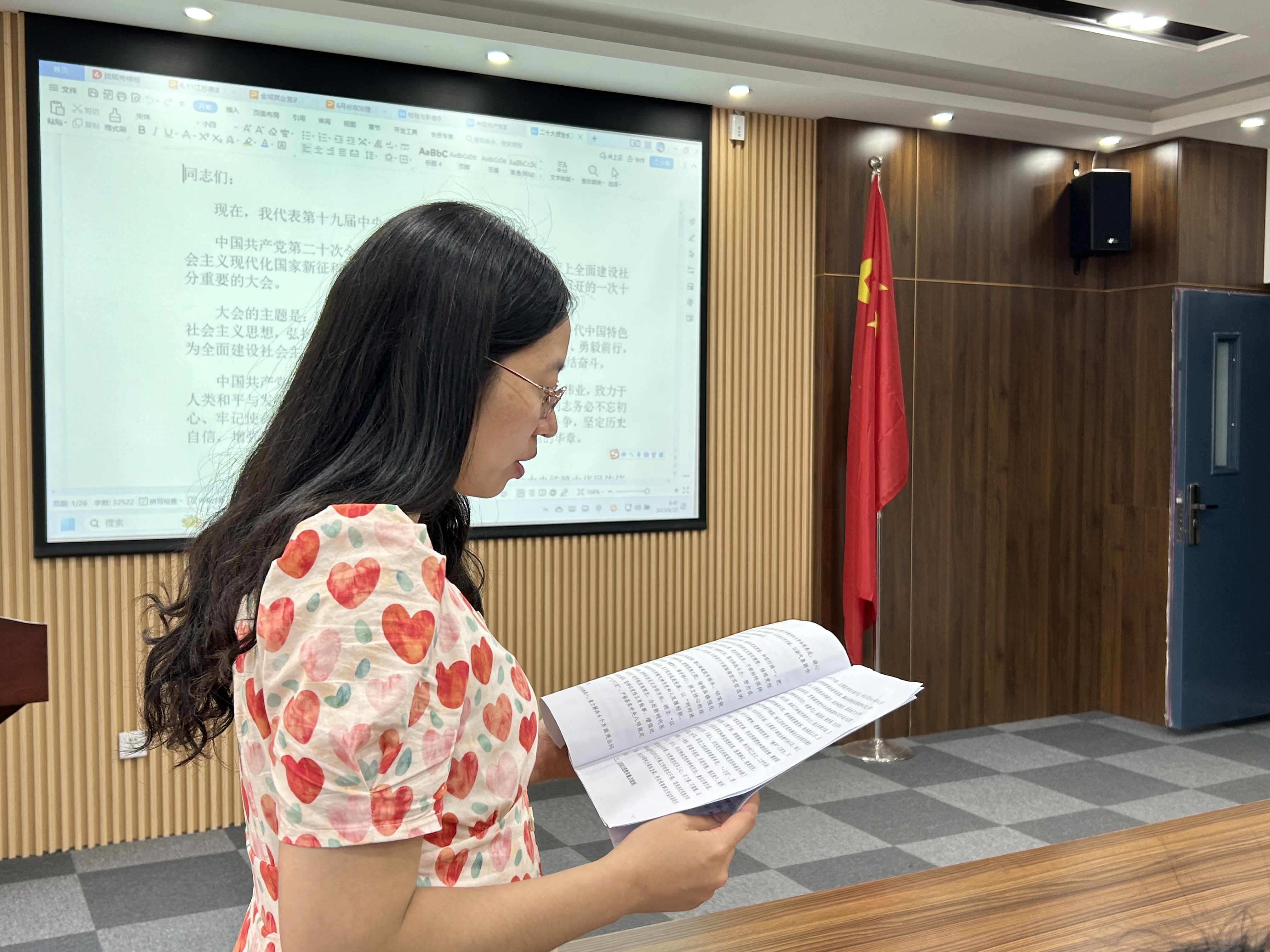 会上,青年党员王蕊从阅读《论党的自我革命》中得到启发,指出将以这次主题教育读书为契机,教育青年学生要勇于自我革命、勇于探索、开拓进取,引导学生立志做有理想、敢担当、能吃苦、肯奋斗的新时代好青年。青年党员郭亚飞通过对习近平新时代中国特色社会主义思想的学习,提升理论素养,坚定理想信念,提高自我觉悟,增强能力水平,在今后工作中要学思用贯通,真正做到以学促干。青年党员李家磊围绕二十大报告,给大家分享了党的二十大的重要意义,感悟到青年教师要加强师德修养,守己正心,严守师道,不忘来时路。青年党员刘明月从坚定“四个自信”和“以中国式现代化全面推进中华民族伟大复兴”开篇,跟大家分享“如何在文化多元化格局下,帮助新时代青年扣好人生第一课扣子”。青年党员黄诗允在分享会上借助《全面贯彻新时代人才工作新理念新战略新举措》中“为什么建设人才强国、什么是人才强国、怎样建设人才强国”,跟大家共同探讨了人才是创新的第一资源,创新驱动本质上是人才驱动,必须把人才资源开发放在最优先位置。