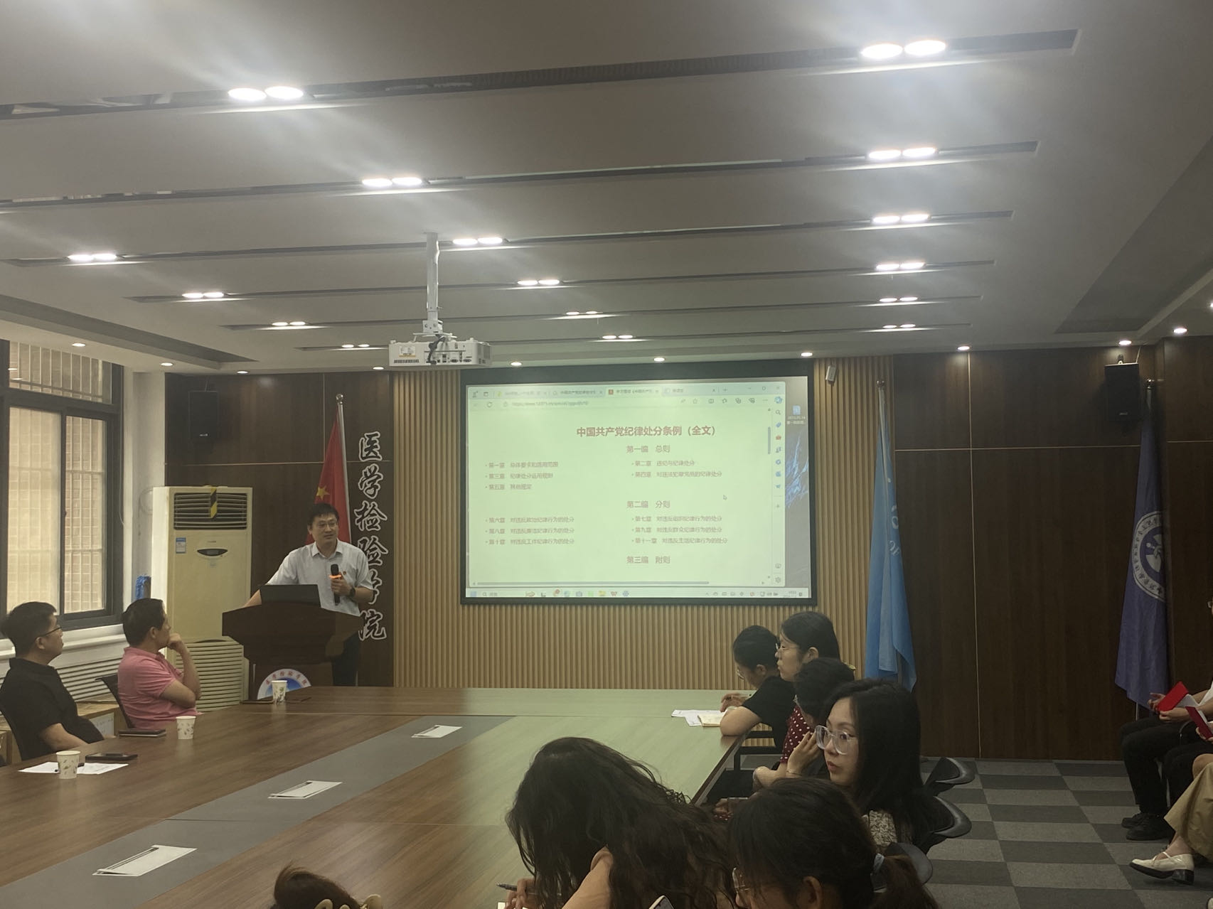 为推动党纪学习教育走深走实、入心入脑、见行见效,副院长薛宏围绕《条例》新增或修改的重点条文内容,为全体教师讲授专题党课,引导党员们牢固树立底线意识,扣好廉洁自律第一颗“扣子”,自觉做到知纪明纪学纪守纪,深入领会加强党的纪律建设、进一步增强党员从严从实检身正己,主动担当作为的规矩意识。
