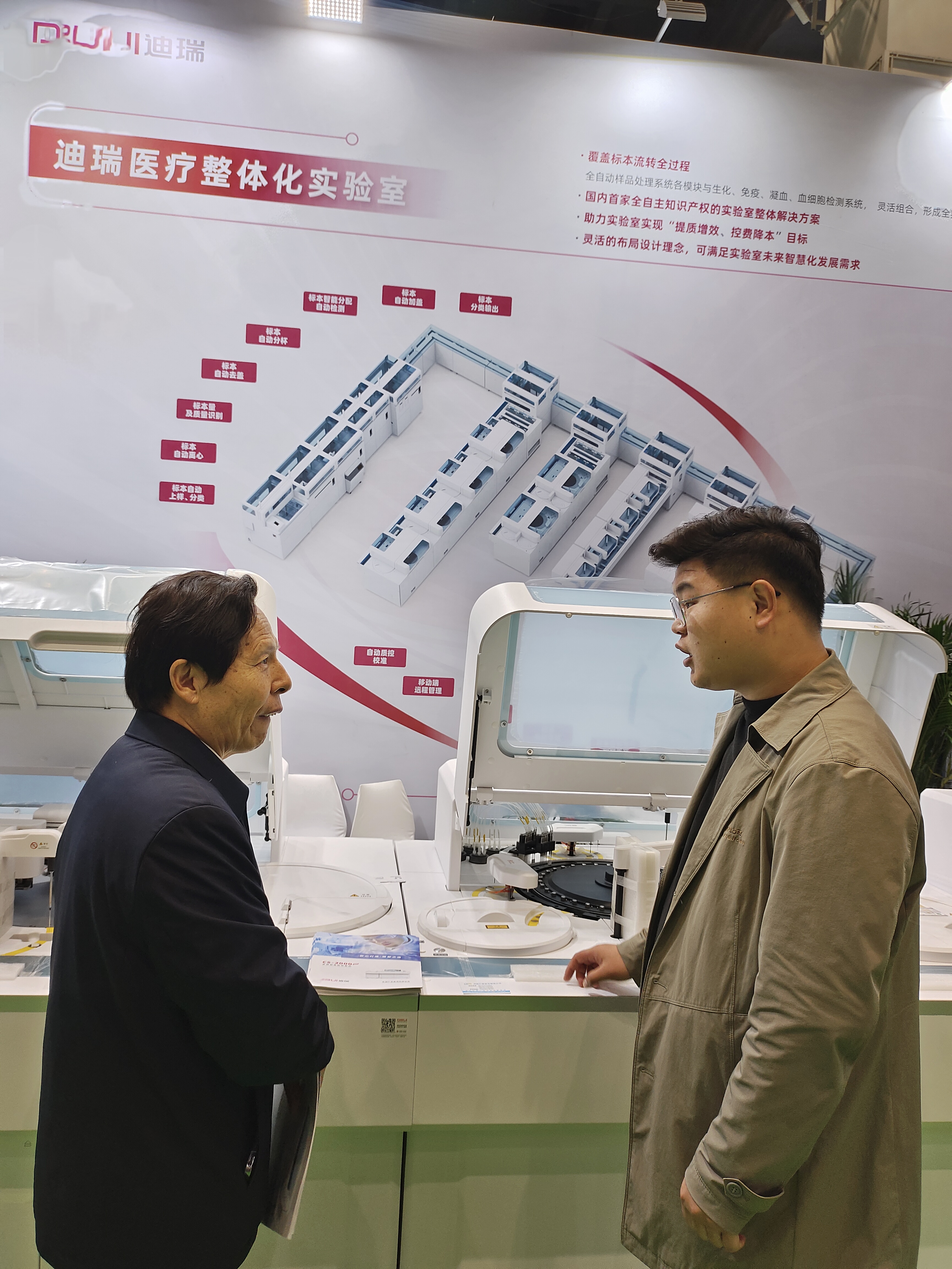 贺志安院长在展会现场,认真听取了各参展商关于新产品、新技术的介绍,特别关注了体外诊断领域的智能化设备、快速检测技术以及检验数据的信息化管理系统等,与行业专家就检验医学未来发展趋势展开深入交流,为学院学科建设与专业发展收集了最新的行业信息。他表示:“这不仅是一场汇聚前沿技术与创新产品的行业盛会,更是推动医疗行业发展的重要平台。在这里,我深切感受到了检验医疗器械领域的创新活力与无限潜力,许多新技术、新产品都让我眼前一亮,这对我们学院的学科发展和人才培养方向有着重要的启示作用。”