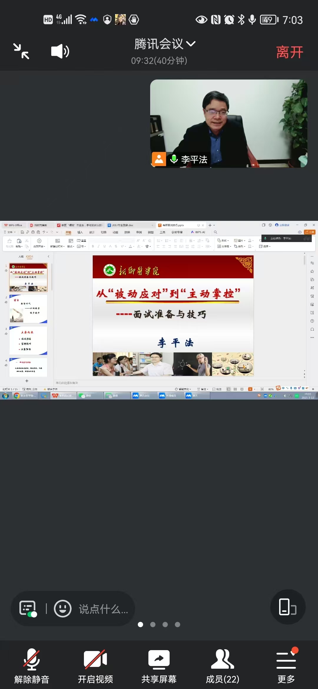 3月13日,医学检验学院为帮助考研学生更好应对复试,以线上形式开展了 “从‘被动应对’到‘主动掌控’——考研面试准备与技巧”专题讲座,本次讲座由资深教授李平法老师担任主讲,众多考研学子积极参与。