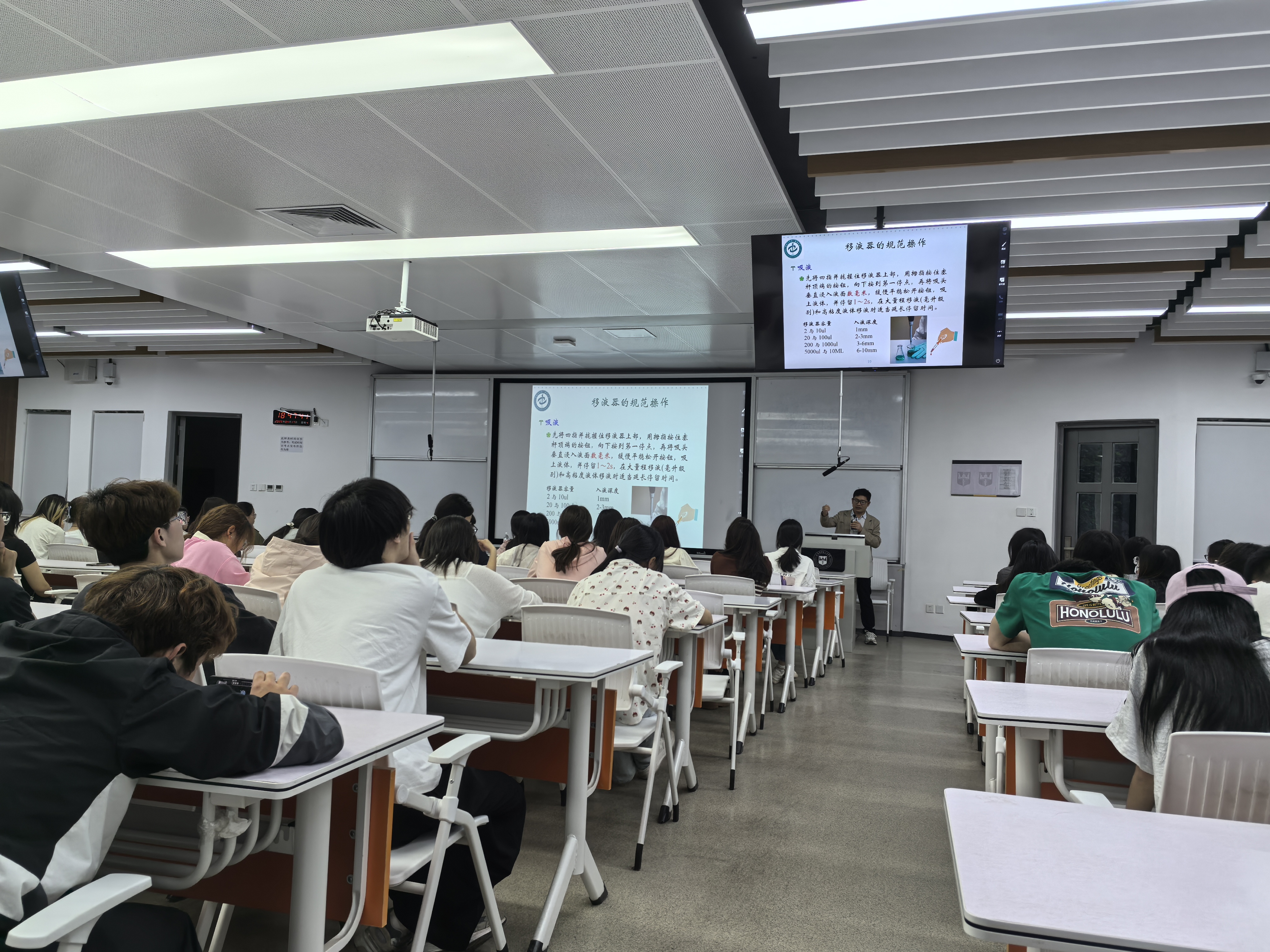 讲座伊始,我院临床检验综合实训中心及临床免疫学检验技术教研室相关负责人对张磊老师的到来表示热烈欢迎,并向学生们介绍了此次讲座的重要意义。负责人强调,规范的实验操作技能是医学检验技术专业学生的核心竞争力,掌握实验室设备的正确使用与维护知识,不仅关乎实验数据的准确性,更是保障医疗安全和科研顺利开展的重要前提。希望同学们珍惜此次学习机会,认真聆听、积极互动,切实提升自身实践能力。