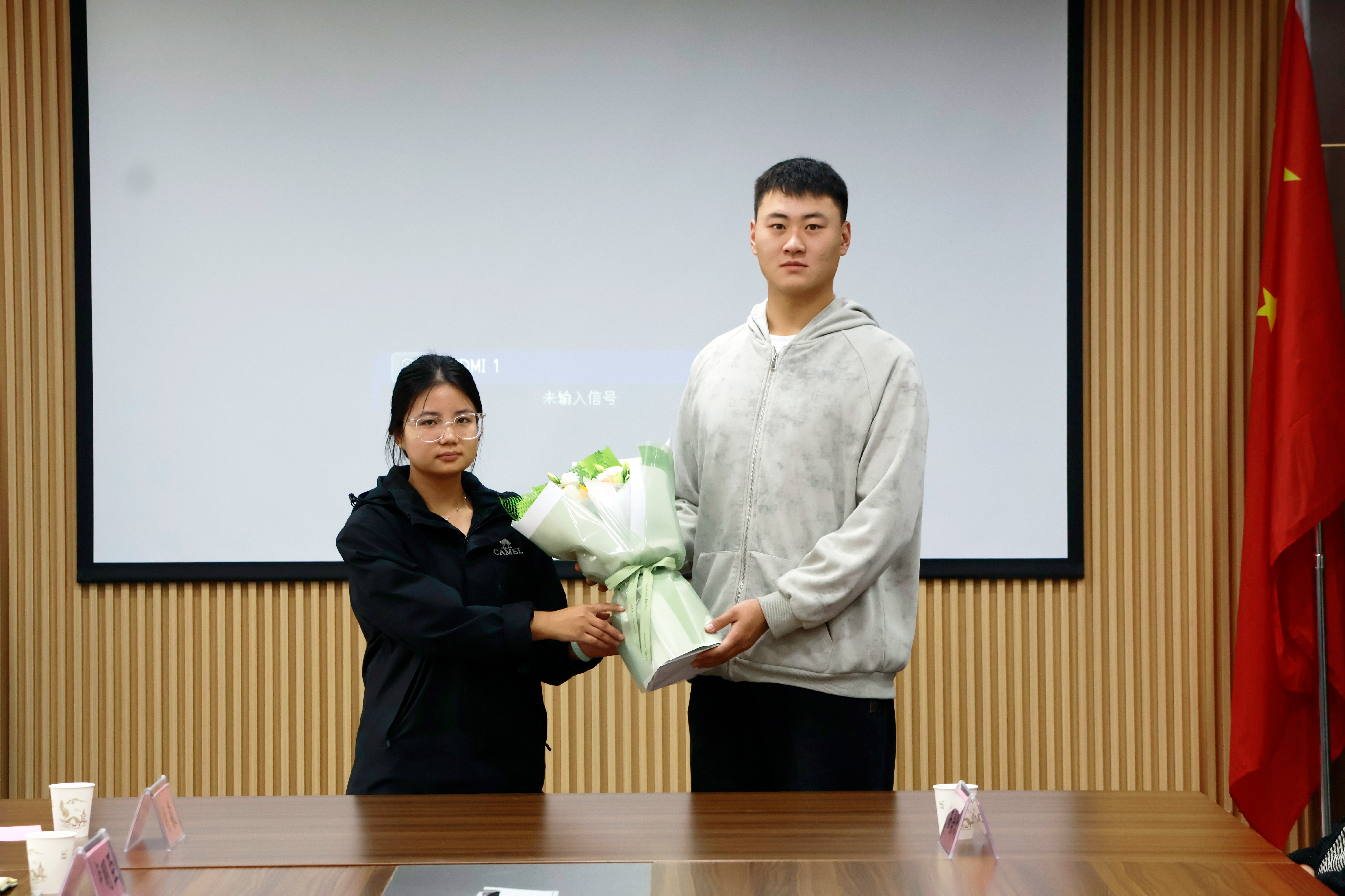特邀参加过国家阅兵方队的学生代表潘嘉烁,作为退役士兵学生的“标杆” 率先分享。他动情讲述阅兵经历,表示“站在天安门广场接受检阅时,我手握钢枪,心里想的是守护好脚下的土地;现在穿上白大褂走进实验室,我握着移液器,心里念的是守护好每一个生命的希望。虽立场不同,却有着相同的守护初心”。他坦言面对入学后学习环境融入的难题,但在老师与领导的帮助下,已顺利适应校园生活,未来将把阅兵训练中“坚忍不拔、追求极致” 的精神迁移至医学学习,以精准态度对待每一次实验、每一个知识点。潘嘉烁的分享引发共鸣,现场响起热烈掌声,学院还为其送上鲜花,致敬其榜样力量。