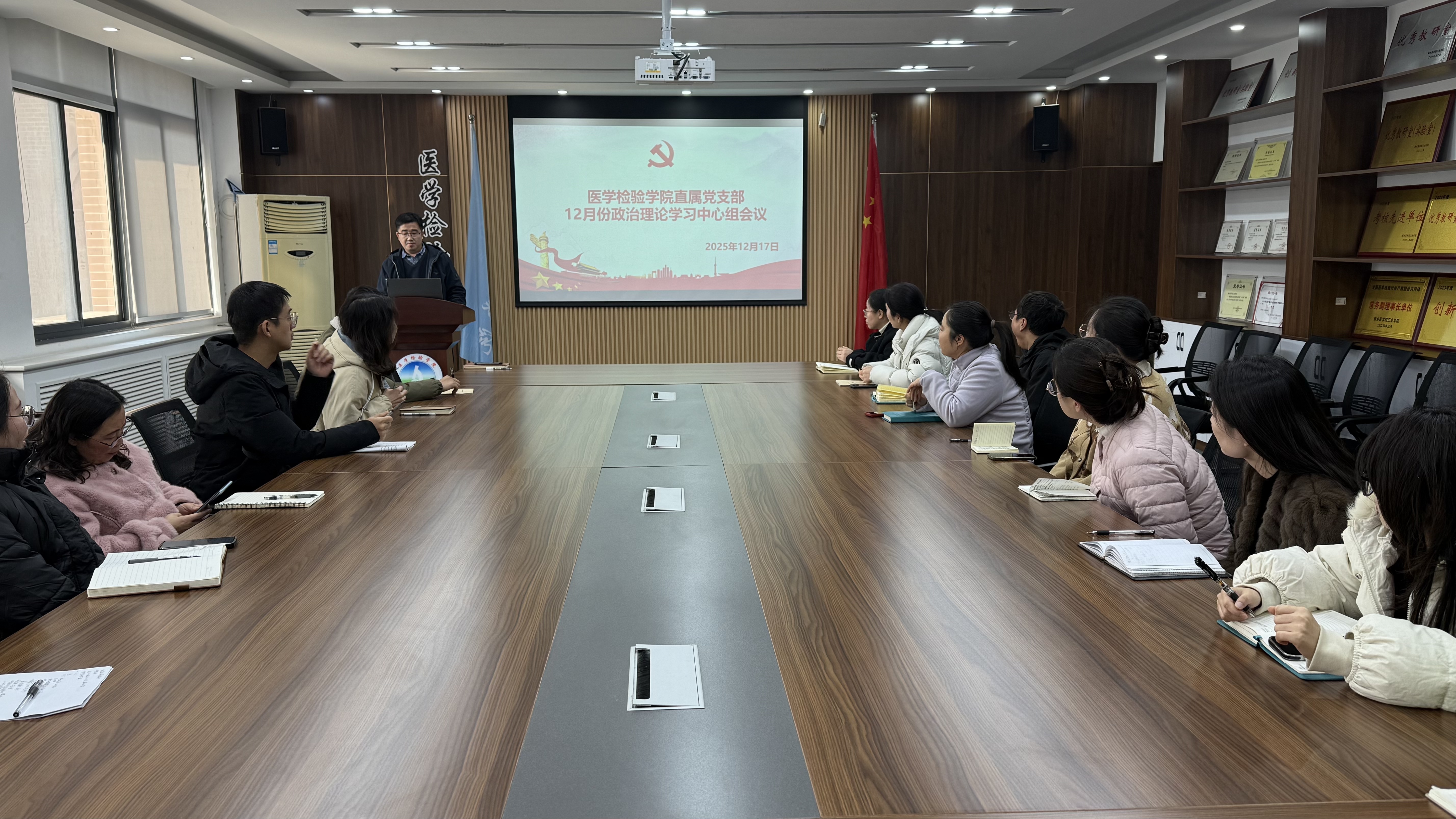 12月17日,医学检验学院直属党支部理论学习中心组在医学检验学院一楼会议室进行12月份政治理论学习,会议由党支部书记胡淼主持,党支部理论学习中心组全体成员参加。