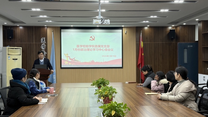 1月19日,医学检验学院直属党支部理论学习中心组在医学检验学院一楼会议室进行1月份政治理论学习,会议由党支部书记胡淼主持,党支部理论学习中心组全体成员参加。