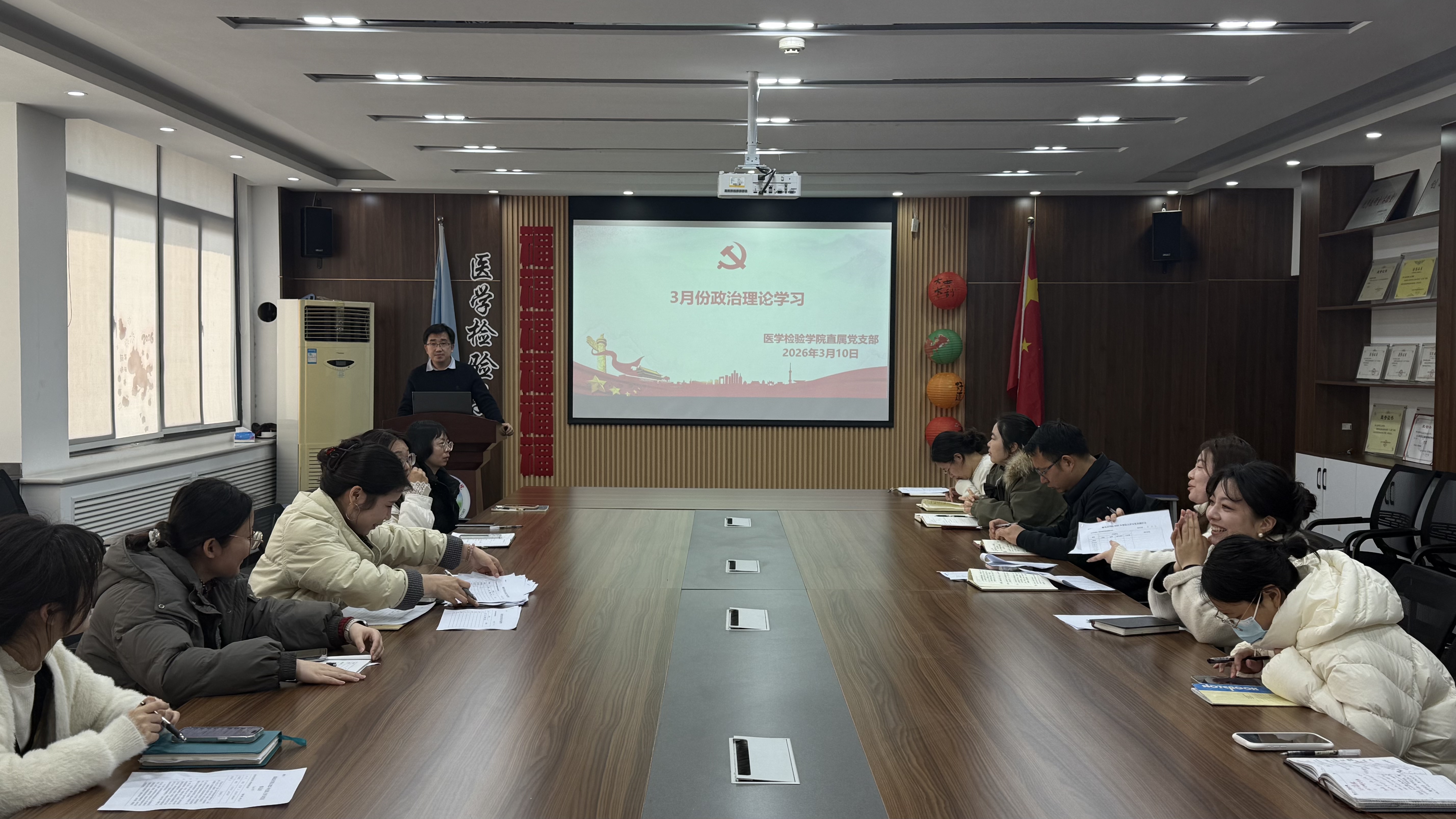3月10日,医学检验学院直属党支部在医学检验学院一楼会议室进行3月份政治理论学习,会议由党支部书记胡淼主持,全体党员教师参加。