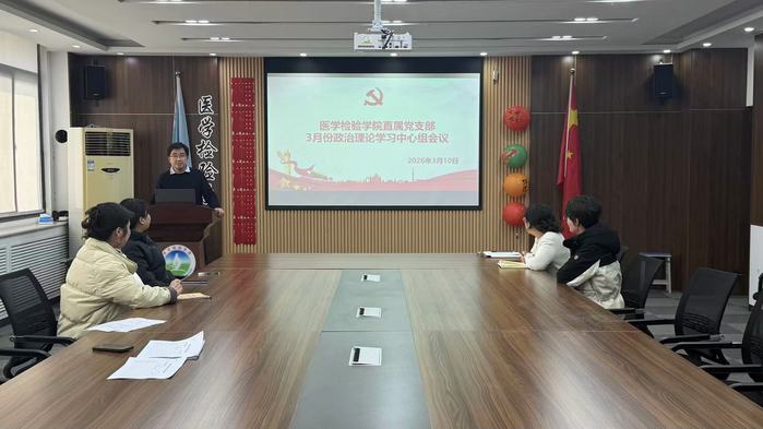 3月10日,医学检验学院直属党支部理论学习中心组在医学检验学院一楼会议室进行3月份政治理论学习,会议由党支部书记胡淼主持,党支部理论学习中心组全体成员参加。