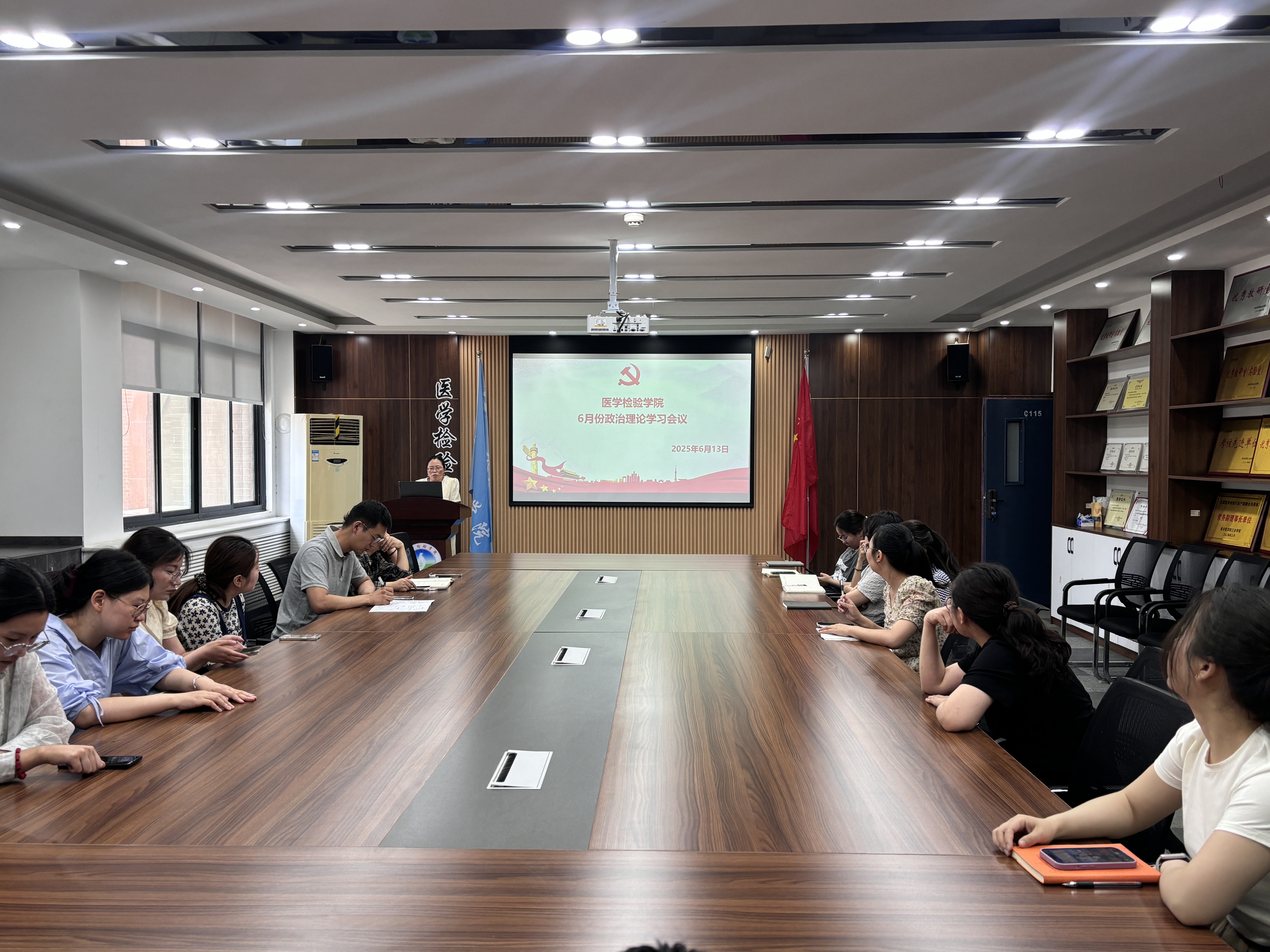 6月13日,医学检验学院党支部在院系楼一楼会议室进行6月份政治理论学习,会议由党支部书记杜纪英主持,全体党员及教师代表参加。会议由党支部书记杜纪英领学:2025年全国“安全生产月”活动启动;深入贯彻...