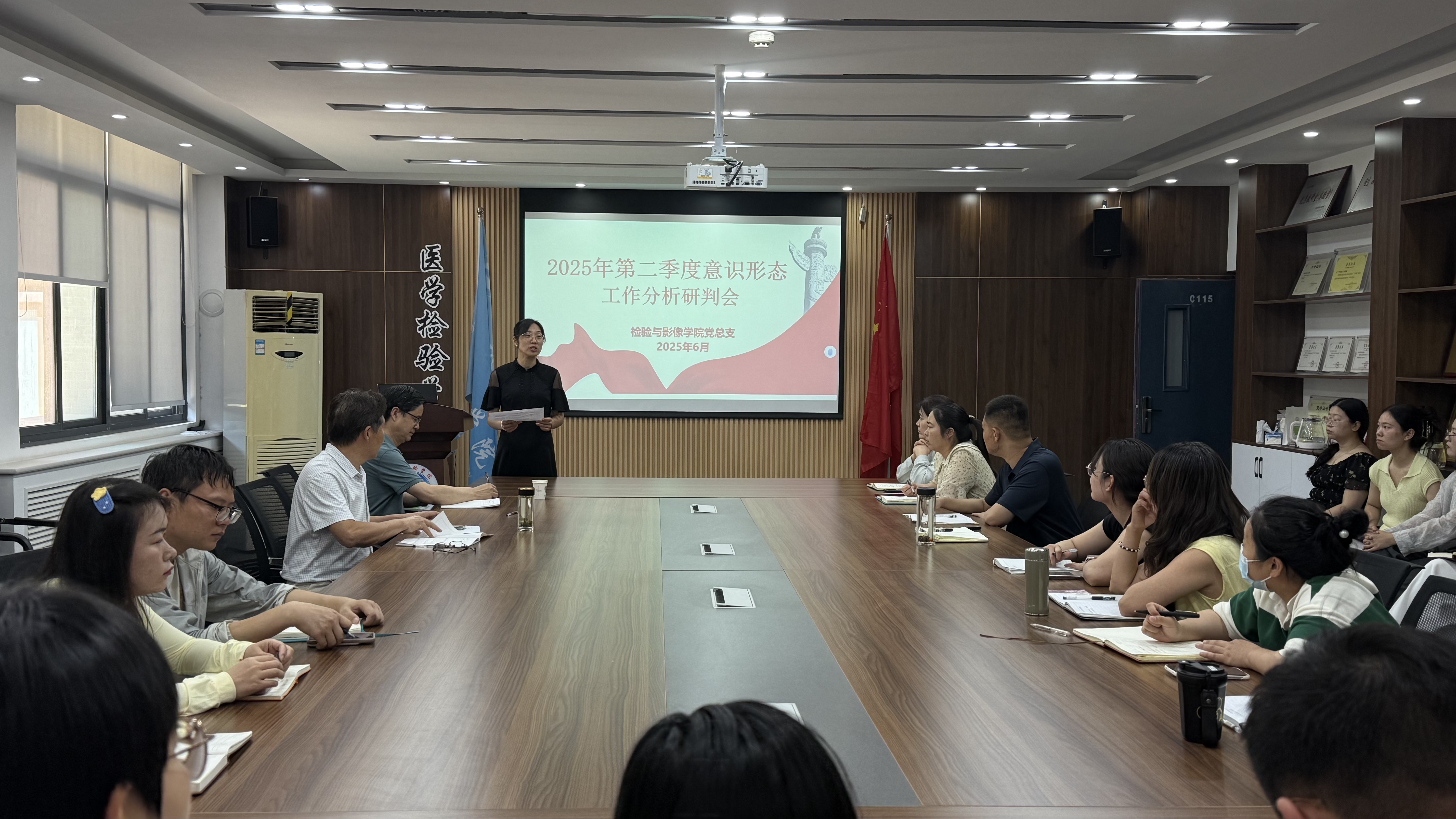2025年6月5日,检验与影像学院党总支在医学检验学院一楼会议室召开2025年第二季度意识形态工作分析研判会。本次会议由党总支副书记苗莹莹主持,党总支全体成员参与。会议围绕校园安全、教务管理、师生心理...