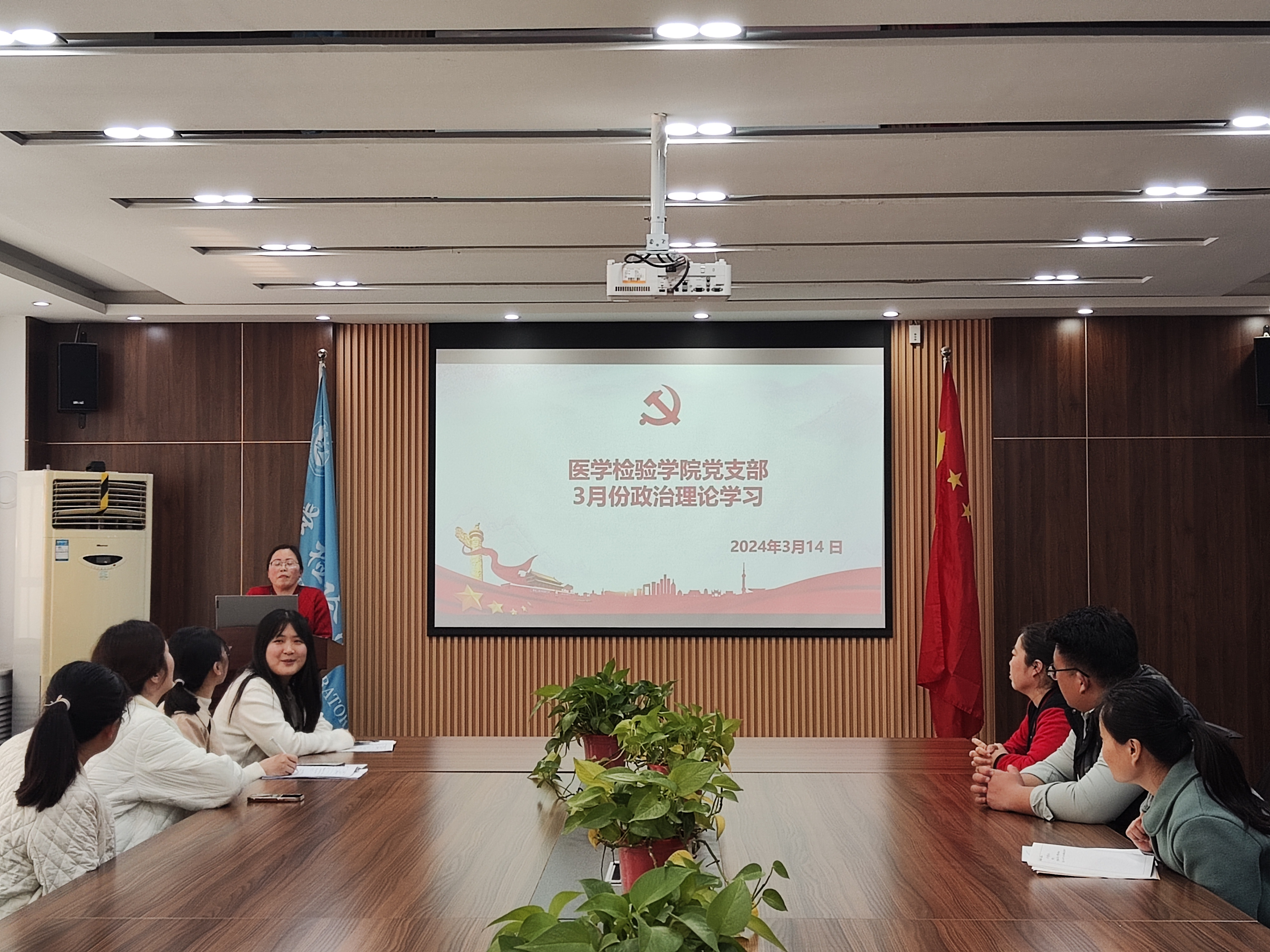 3月14日,医学检验学院党支部在院系楼一楼进行3月份政治理论学习,会议由党支部书记杜纪英主持,全体党员及教师代表参加。会议由党支部书记杜纪英领学:《习近平在2024年春季学期中央党校(国家行政学院)...