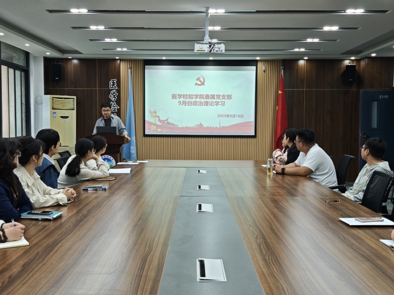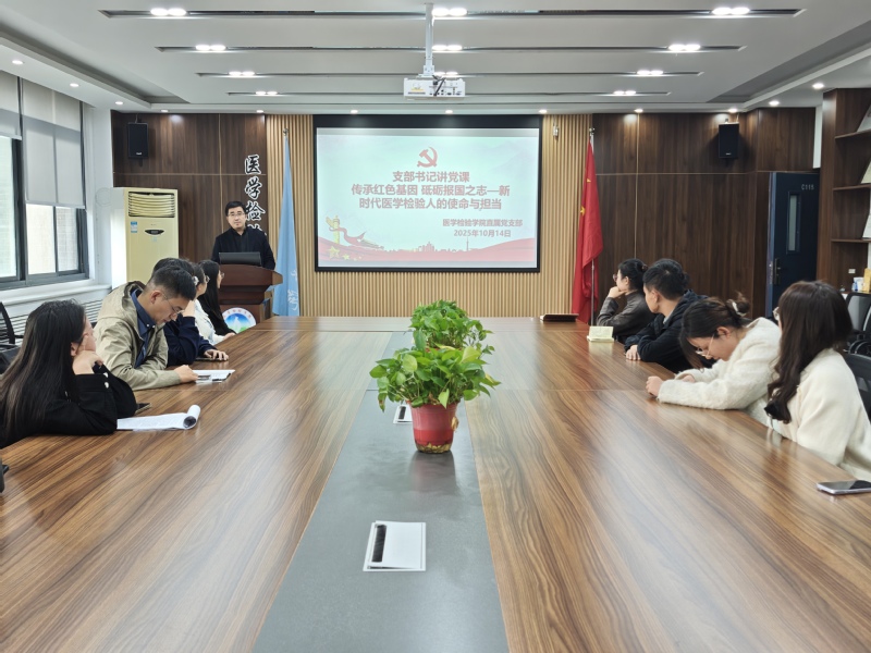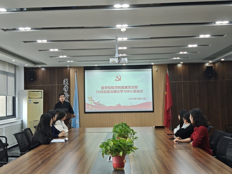 2025年10月14,医学检验学院直属党支部在医学检验学院会议室进行“传...