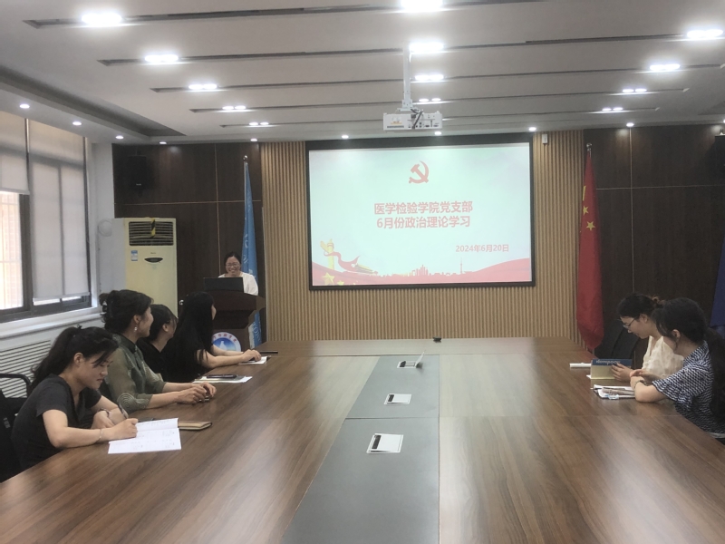 2024年6月20日,医学检验学院党支部在会议室进行6月份主题党日活动,...