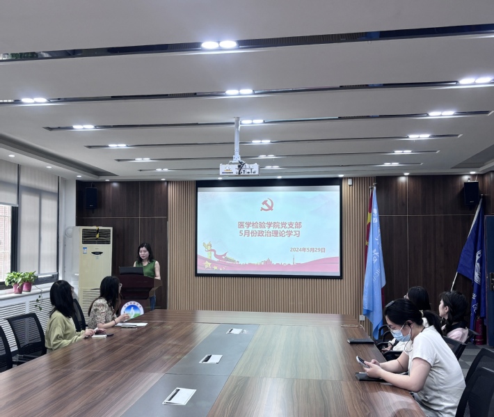 2024年5月14日,医学检验学院党支部在会议室进行5月份主题党日活动,...