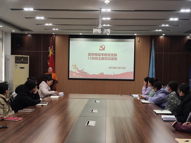 2024年12月19日,医学检验学院党支部在会议室进行12月份主题党日活动...