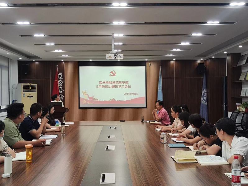 2024年9月5日,医学检验学院党支部在会议室进行9月份主题党日活动,...