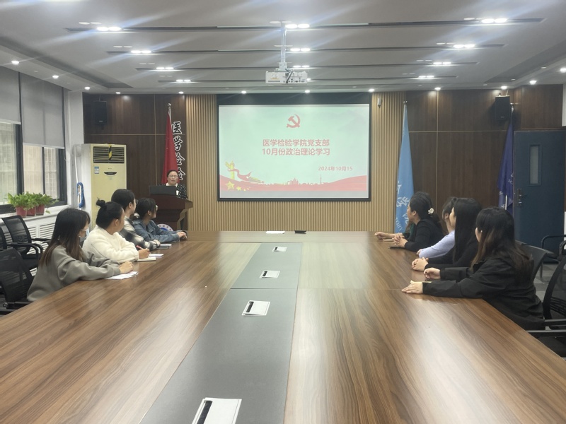 2024年10月17日,医学检验学院党支部在会议室进行10月份主题党日活动...
