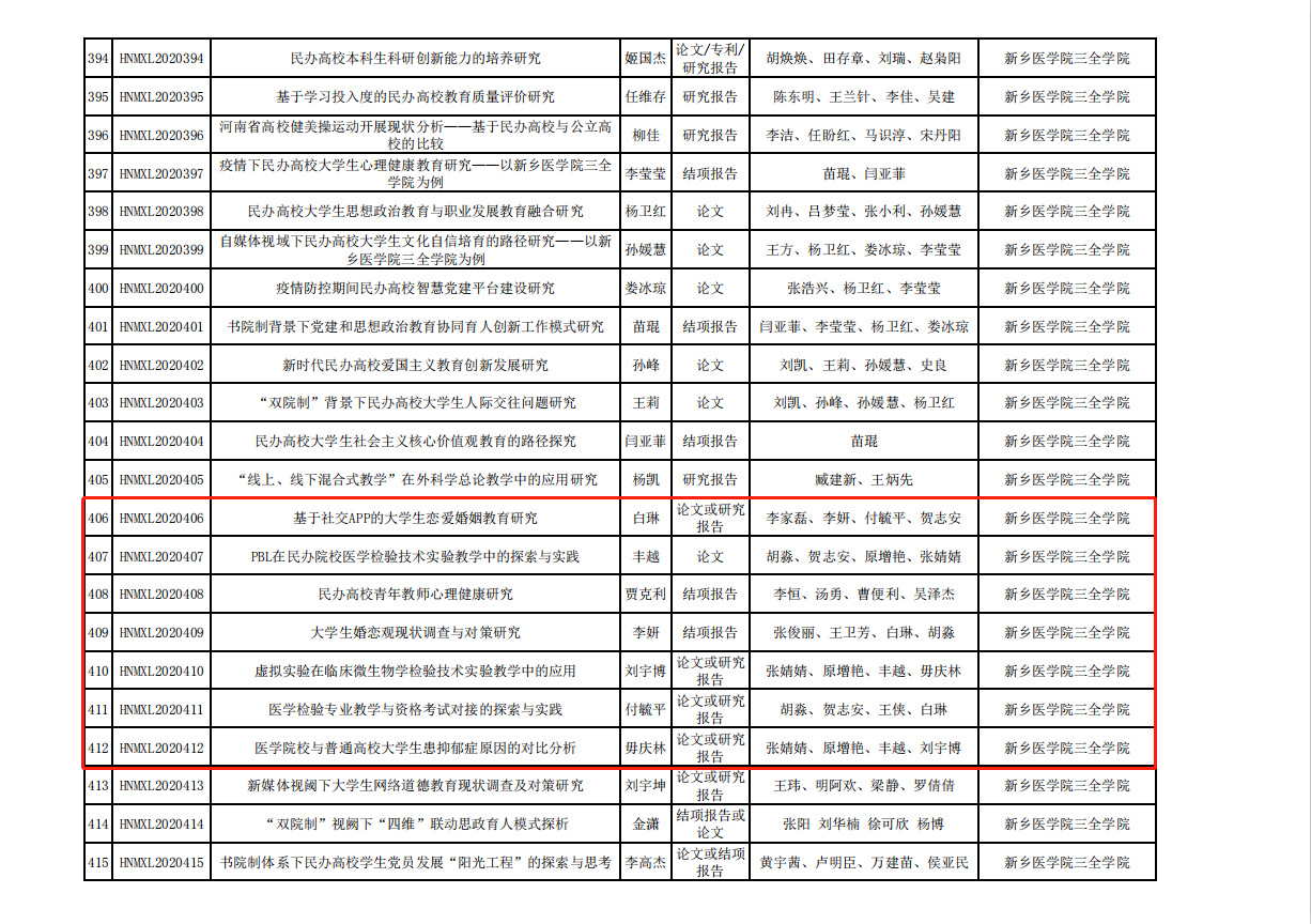 医学检验学院在河南省民办教育协会2020年度课题立项中获得7项立项