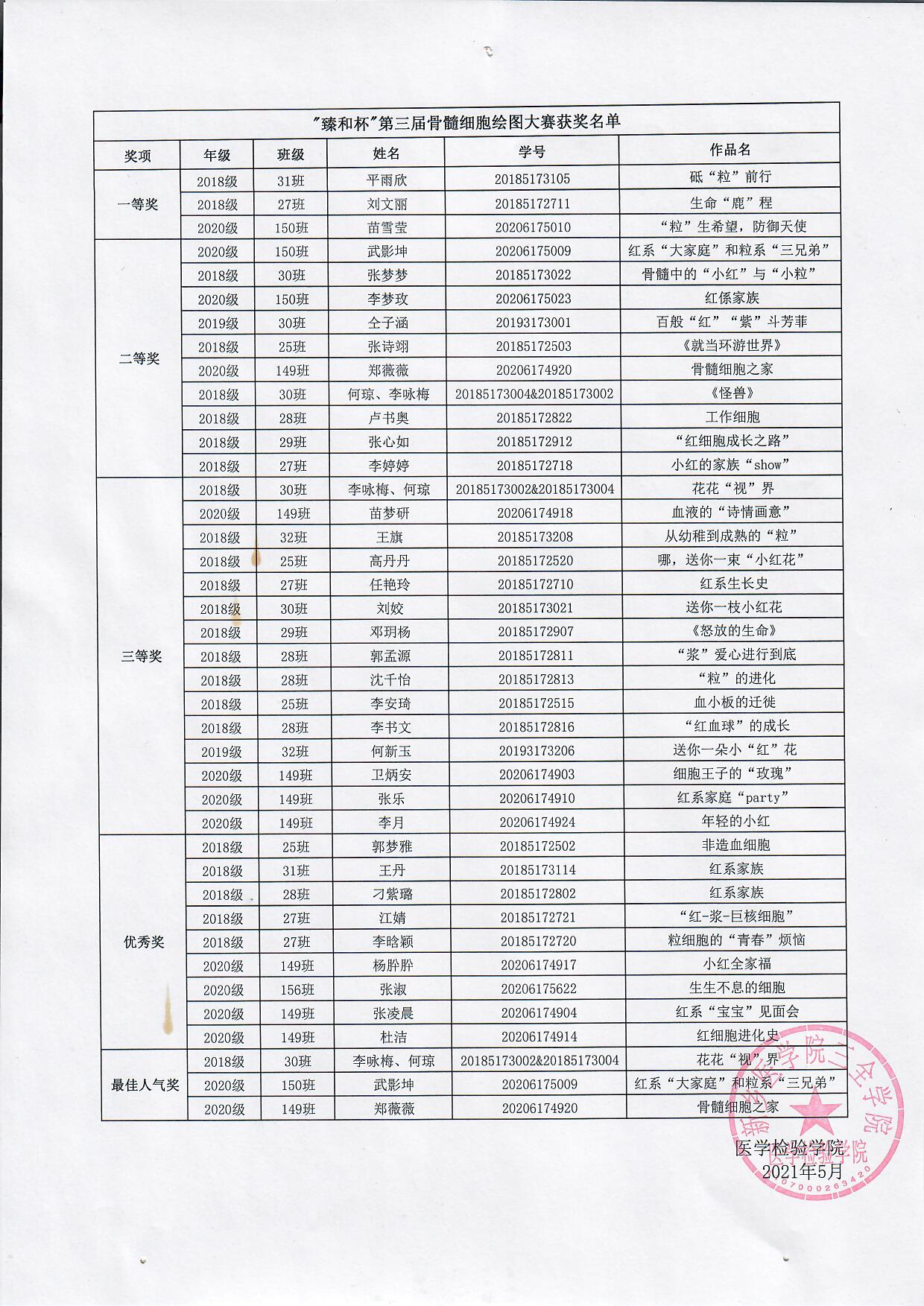 医学检验学院“臻和杯”第三届骨髓细胞绘图大赛获奖结果公布