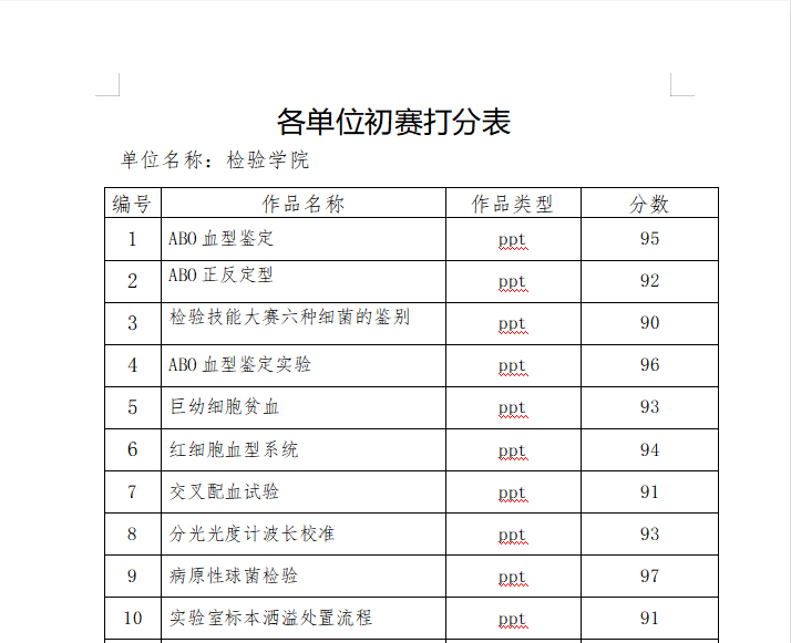 医学检验学院第十一届教育教学信息化大赛初赛结果公示